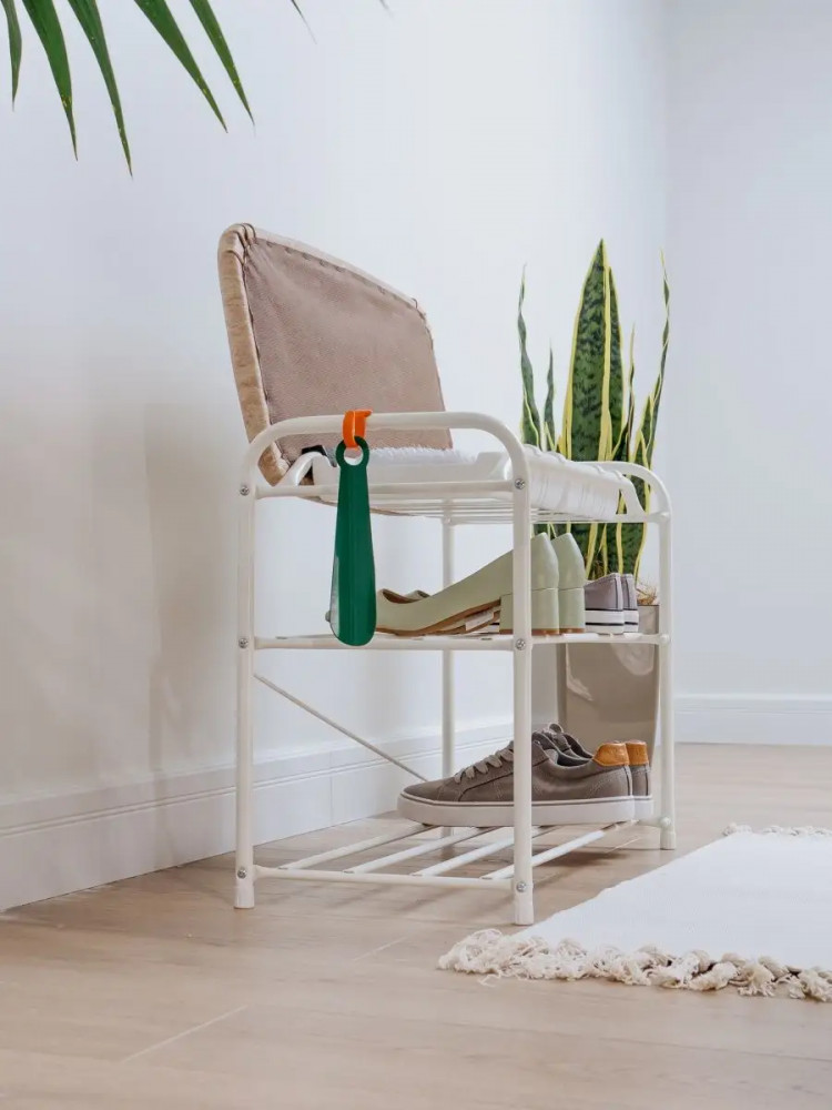 Этажерка выполнена из прочной металлической трубы диаметром 16 мм, что гарантирует ее долговечность и надежность. Она имеет две полки, на которых без труда можно разместить до 6 пар обуви. Кроме того, каждая полочка способна выдерживать нагрузку до 8 кг, что обеспечит надежную поддержку вашей обуви. Заглушки на ножках защищают пол от царапин. Галошница Альфа 23СЯ продается в разобранном виде в картонной коробке с ручкой для удобства транспортировки. Для ее сборки в комплекте есть инструмент и вся необходимая фурнитура.