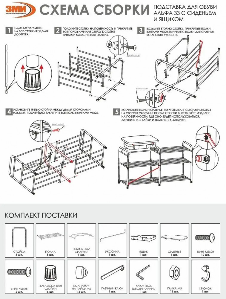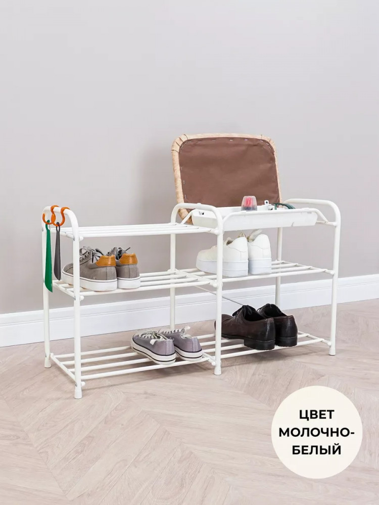 Этажерка выполнена из прочной металлической трубы диаметром 16 мм, что гарантирует ее долговечность и надежность. Она имеет 3 полки, на которых без труда можно разместить до 10 пар обуви. Кроме того, каждая полочка способна выдерживать нагрузку до 8 кг, что обеспечит надежную поддержку вашей обуви. Заглушки на ножках защищают пол от царапин. Галошница Альфа 33СЯ продается в разобранном виде в картонной коробке с ручкой для удобства транспортировки. Для ее сборки в комплекте есть инструмент и вся необходимая фурнитура. Приятным бонусом станет наличие крючка для обувной ложки. Благодаря своим функциональным возможностям и преимуществам, открытая напольная обувница станет отличным выбором для вашей прихожки, придавая ей уют и порядок.