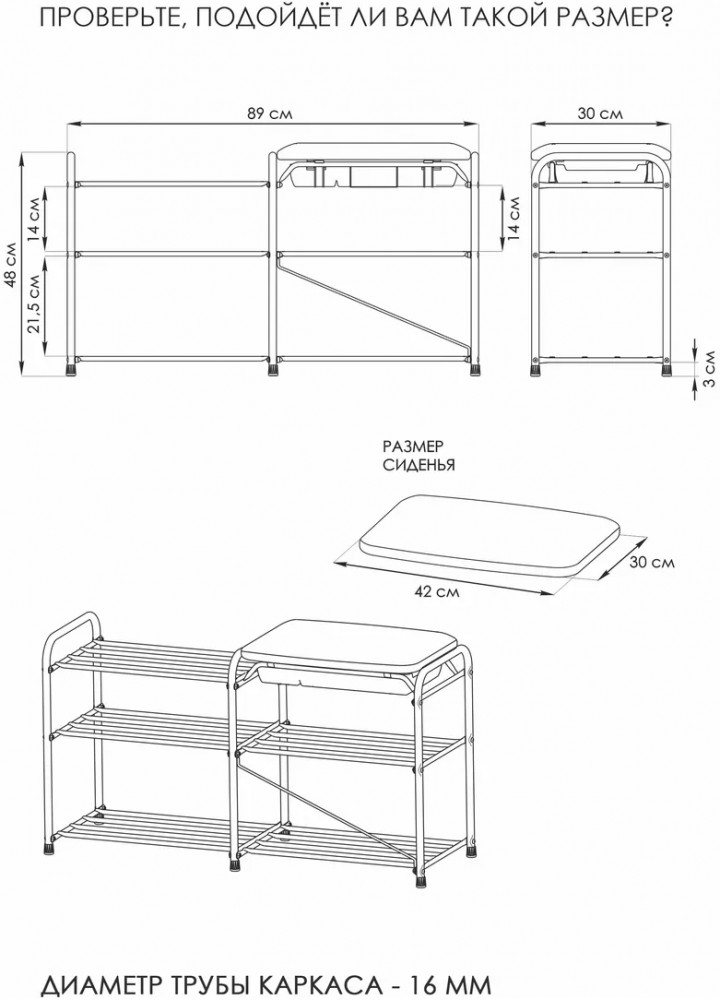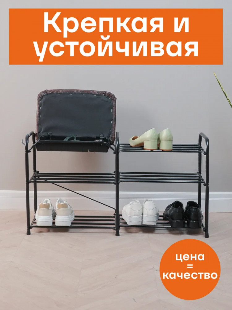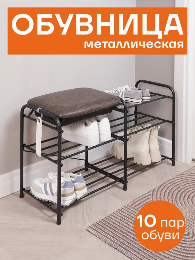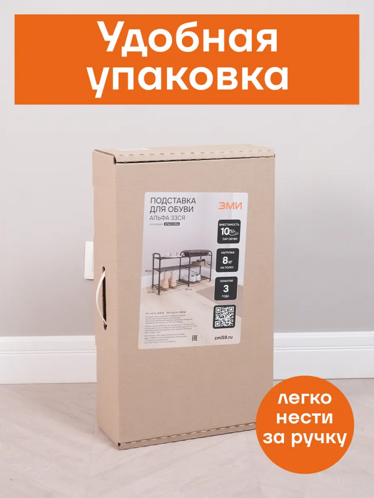 Этажерка выполнена из прочной металлической трубы диаметром 16 мм, что гарантирует ее долговечность и надежность. Она имеет 3 полки, на которых без труда можно разместить до 10 пар обуви. Кроме того, каждая полочка способна выдерживать нагрузку до 8 кг, что обеспечит надежную поддержку вашей обуви. Заглушки на ножках защищают пол от царапин. Галошница Альфа 33СЯ продается в разобранном виде в картонной коробке с ручкой для удобства транспортировки. Для ее сборки в комплекте есть инструмент и вся необходимая фурнитура. Приятным бонусом станет наличие крючка для обувной ложки. Благодаря своим функциональным возможностям и преимуществам, открытая напольная обувница станет отличным выбором для вашей прихожки, придавая ей уют и порядок.