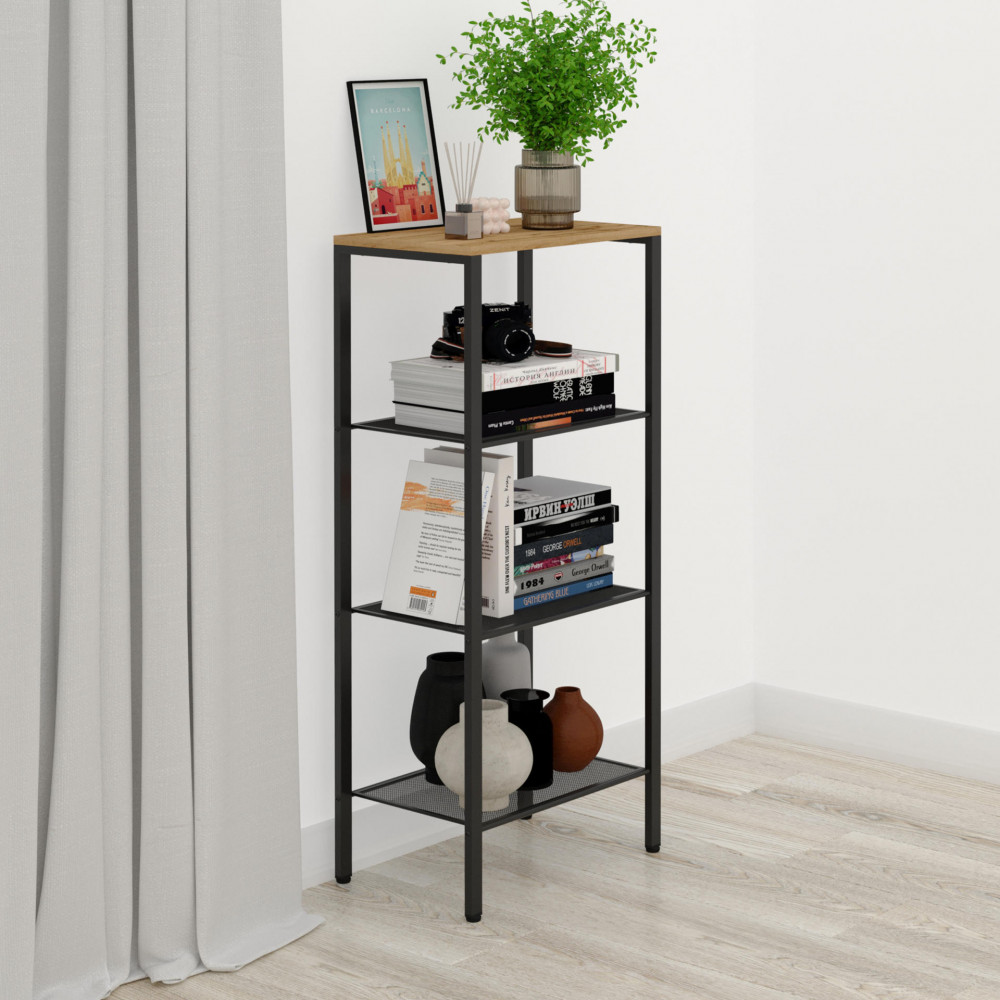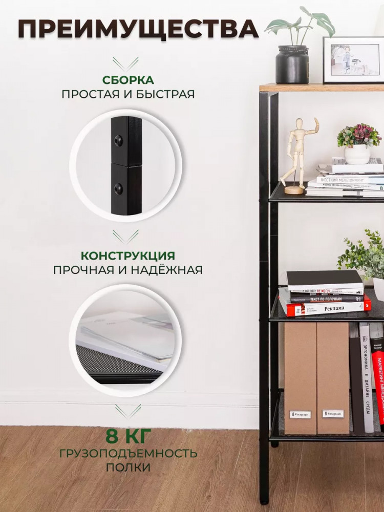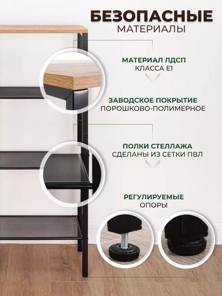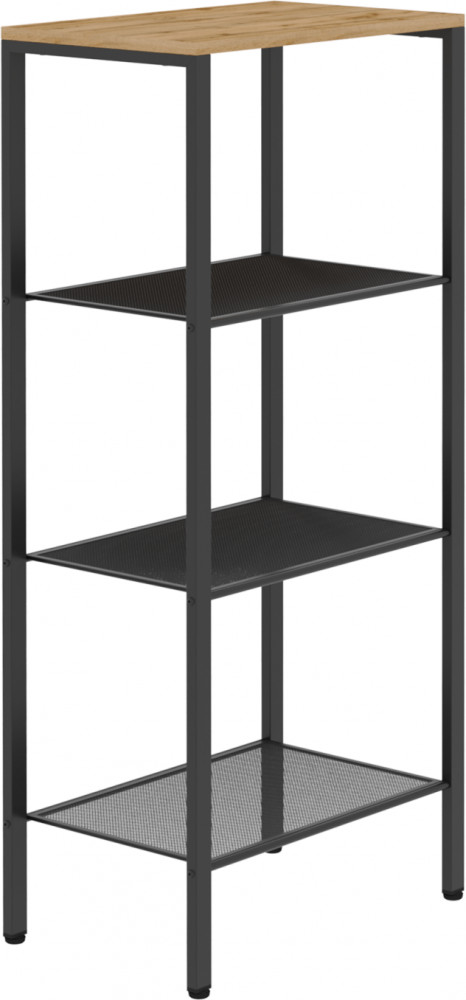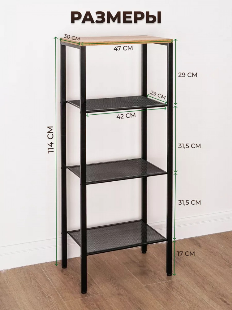 Напольный стеллаж Торонто 14 от производителя ЗМИ — это стиль и качество по доступной цене и средство для организации хранения в вашей квартире! Простой в сборке аксессуар украсит любое помещение. Изделие изготовлено из высокопрочного металлического материала с полимерный покрытием. Оно имеет прочный каркас и прослужит долгое время. Конструкция оснащена 4 полками для вашего комфорта и удобства. Они фиксируются вертикальными перекладинами на углах. Открытый комнатный стеллаж черного цвета на регулируемых ножках имеет надежные крепления. Сетчатые и ЛДСП полочки выдержат нагрузку до 8 кг.
