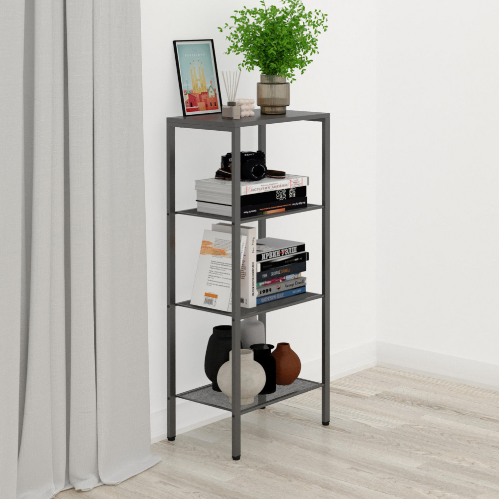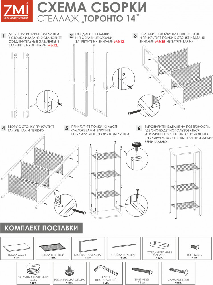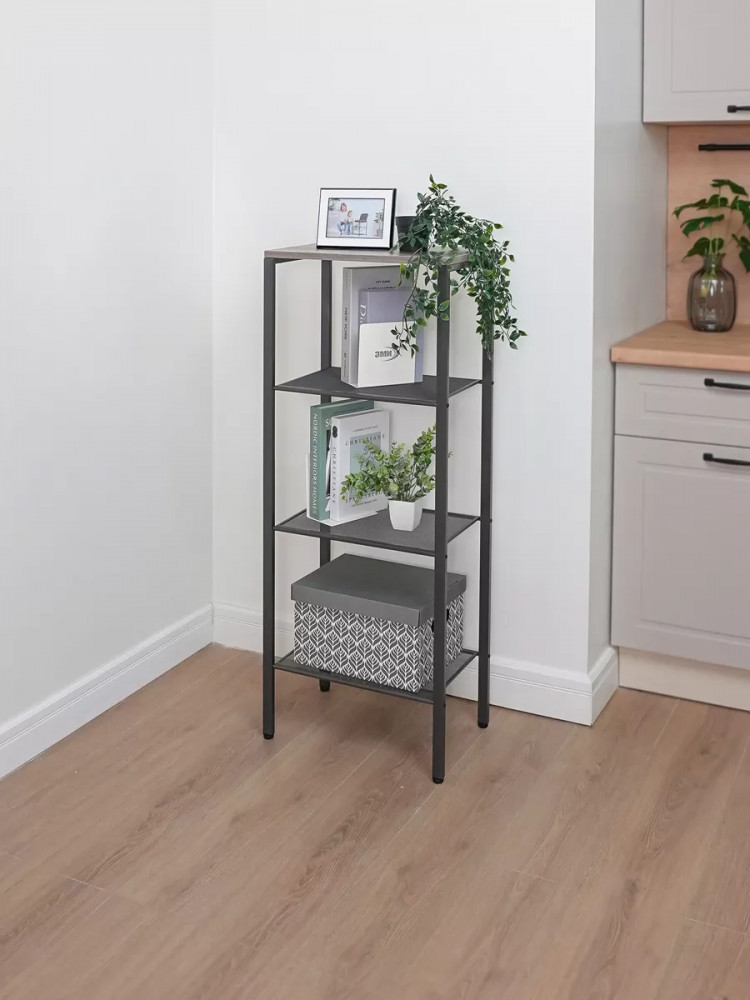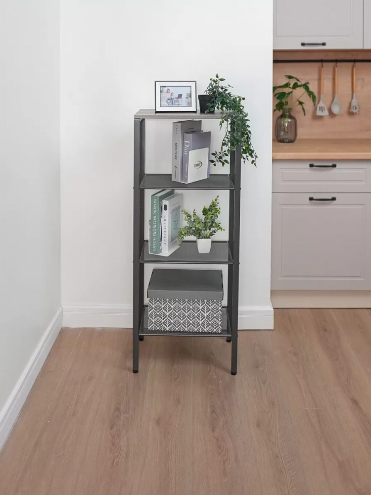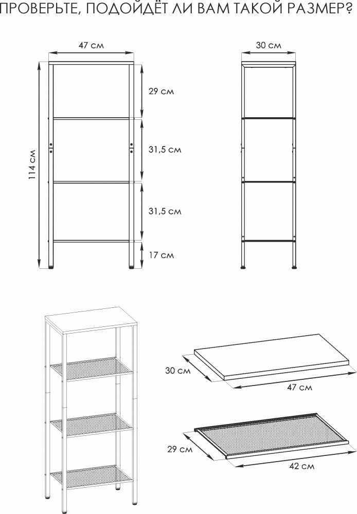 Напольный стеллаж Торонто 14 от производителя ЗМИ — это стиль и качество по доступной цене и средство для организации хранения в вашей квартире! Простой в сборке аксессуар украсит любое помещение. Изделие изготовлено из высокопрочного металлического материала с полимерный покрытием. Оно имеет прочный каркас и прослужит долгое время. Конструкция оснащена 4 полками для вашего комфорта и удобства. Они фиксируются вертикальными перекладинами на углах. Открытый комнатный стеллаж черного цвета на регулируемых ножках имеет надежные крепления. Сетчатые и ЛДСП полочки выдержат нагрузку до 8 кг.