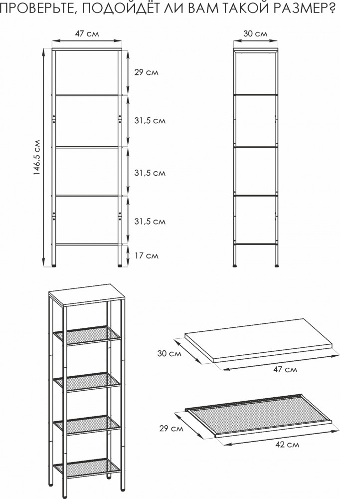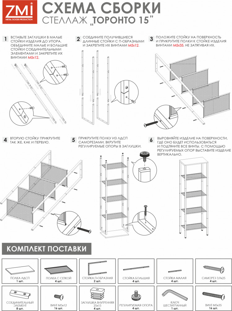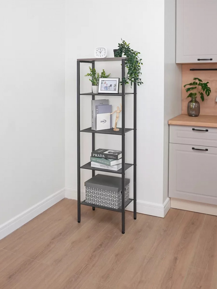 Напольный стеллаж Торонто 15 от производителя ЗМИ — это стиль и качество по доступной цене и средство для организации хранения в вашей квартире! Простой в сборке аксессуар украсит любое помещение. Изделие изготовлено из высокопрочного металлического материала с полимерный покрытием. Оно имеет прочный каркас и прослужит долгое время. Конструкция оснащена 5 полками для вашего комфорта и удобства. Они фиксируются вертикальными перекладинами на углах. Открытый комнатный стеллаж черного цвета на регулируемых ножках имеет надежные крепления. Сетчатые и ЛДСП полочки выдержат нагрузку до 8 кг.