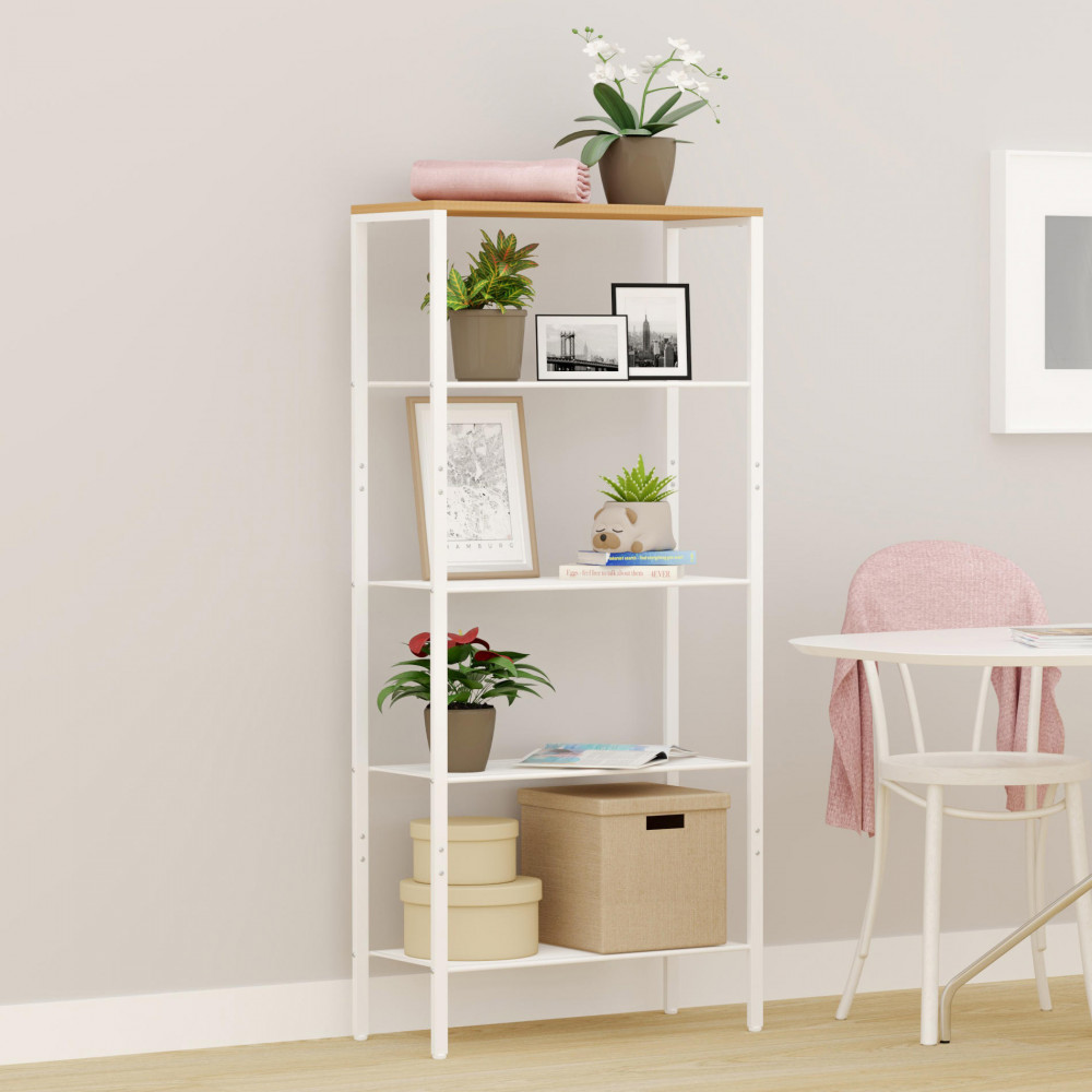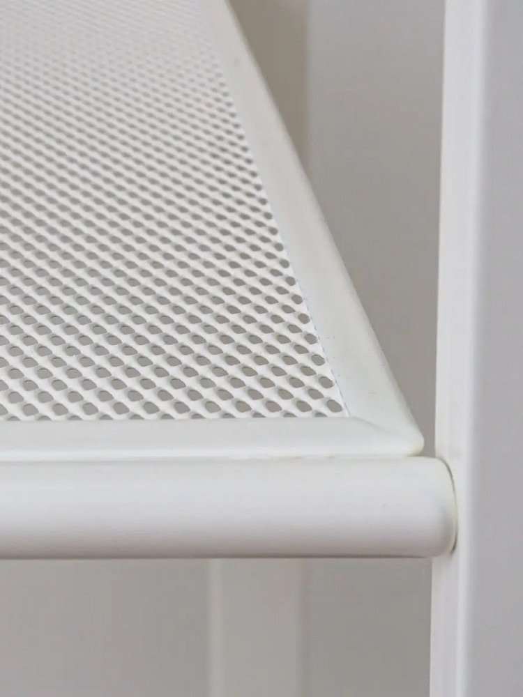 Простой в сборке аксессуар украсит любое помещение. Изделие изготовлено из высокопрочного металлического материала с полимерный покрытием, имеет прочный каркас и прослужит долгое время. Конструкция оснащена 5 полками для вашего комфорта и удобства, они фиксируются вертикальными перекладинами на углах. Открытый комнатный стеллаж на регулируемых ножках имеет надежные крепления. Сетчатые и ЛДСП полочки выдержат нагрузку до 8 кг.