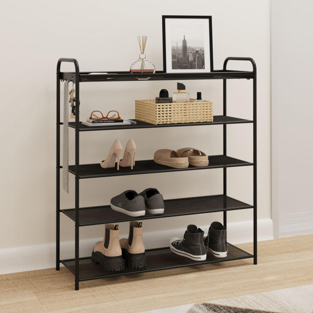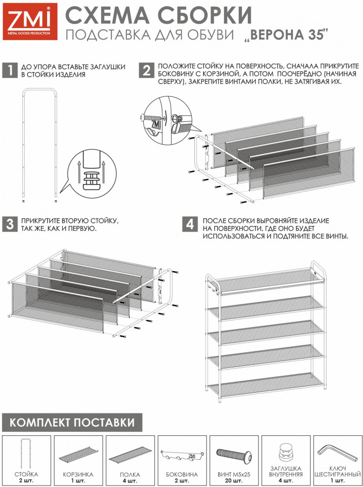 Верона 35 — это стильная и функциональная подставка для обуви, которая станет отличным дополнением вашего интерьера. Она выполнена из высококачественных материалов и обладает прочным каркасом, способным выдерживать нагрузку до 8 кг на каждую полку. Полки представляют собой сварные изделия с основой из просечно-вытяжной сетки. Все изделие окрашено порошковой краской единого цвета. Верона 35 имеет удобные и вместительные полки, на которых можно разместить до 16 пар обуви. Полочки изготовлены из металлической сетки, благодаря чему обувь будет проветриваться и быстро сохнуть. Подставка оснащена верхней корзиной с крючками, где можно хранить зонты, ключи и другие аксессуары. А на боковых стенках предусмотрены специальные крючки для обувной ложки, зонта и ключей. Верона 35 представлена в трёх цветах: чёрном, белом и графитовом, что позволяет выбрать модель, которая идеально впишется в ваш интерьер. Подставка поставляется в прочной картонной упаковке в разобранном виде, в комплекте идут все необходимые детали для сборки.