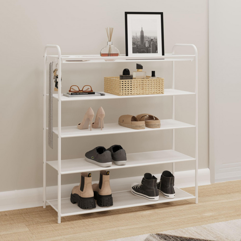 Верона 35 — это стильная и функциональная подставка для обуви, которая станет отличным дополнением вашего интерьера. Она выполнена из высококачественных материалов и обладает прочным каркасом, способным выдерживать нагрузку до 8 кг на каждую полку. Полки представляют собой сварные изделия с основой из просечно-вытяжной сетки. Все изделие окрашено порошковой краской единого цвета. Верона 35 имеет удобные и вместительные полки, на которых можно разместить до 16 пар обуви. Полочки изготовлены из металлической сетки, благодаря чему обувь будет проветриваться и быстро сохнуть. Подставка оснащена верхней корзиной с крючками, где можно хранить зонты, ключи и другие аксессуары. А на боковых стенках предусмотрены специальные крючки для обувной ложки, зонта и ключей. Верона 35 представлена в трёх цветах: чёрном, белом и графитовом, что позволяет выбрать модель, которая идеально впишется в ваш интерьер. Подставка поставляется в прочной картонной упаковке в разобранном виде, в комплекте идут все необходимые детали для сборки.