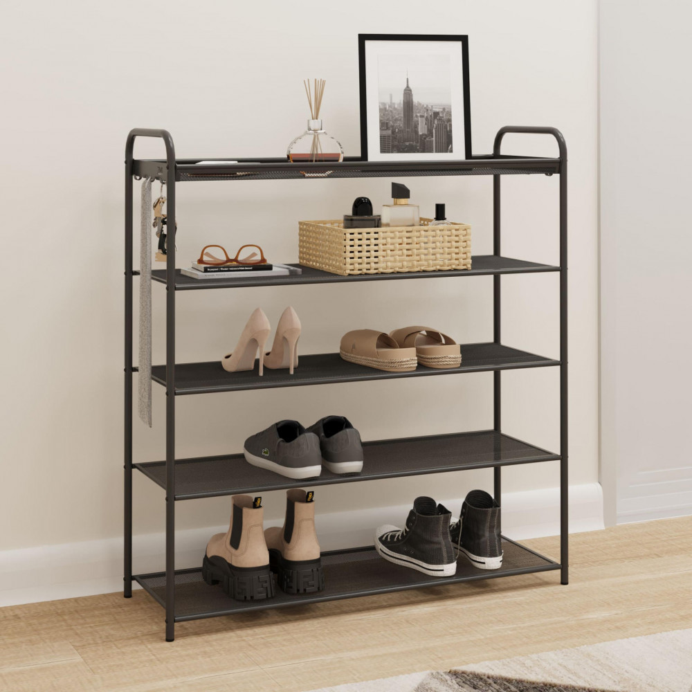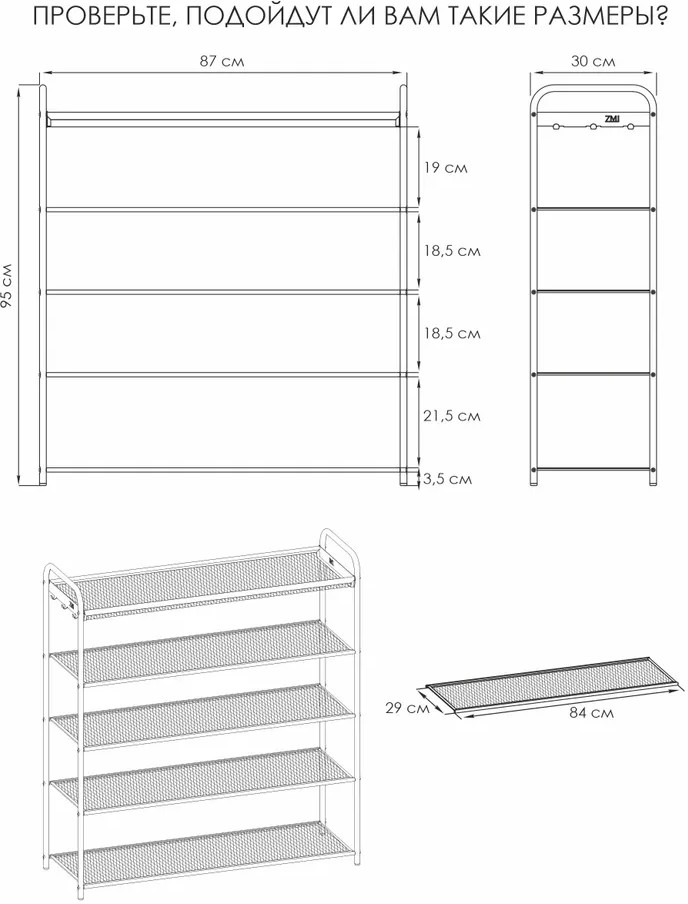 Верона 35 — это стильная и функциональная подставка для обуви, которая станет отличным дополнением вашего интерьера. Она выполнена из высококачественных материалов и обладает прочным каркасом, способным выдерживать нагрузку до 8 кг на каждую полку. Полки представляют собой сварные изделия с основой из просечно-вытяжной сетки. Все изделие окрашено порошковой краской единого цвета. Верона 35 имеет удобные и вместительные полки, на которых можно разместить до 16 пар обуви. Полочки изготовлены из металлической сетки, благодаря чему обувь будет проветриваться и быстро сохнуть. Подставка оснащена верхней корзиной с крючками, где можно хранить зонты, ключи и другие аксессуары. А на боковых стенках предусмотрены специальные крючки для обувной ложки, зонта и ключей. Верона 35 представлена в трёх цветах: чёрном, белом и графитовом, что позволяет выбрать модель, которая идеально впишется в ваш интерьер. Подставка поставляется в прочной картонной упаковке в разобранном виде, в комплекте идут все необходимые детали для сборки.