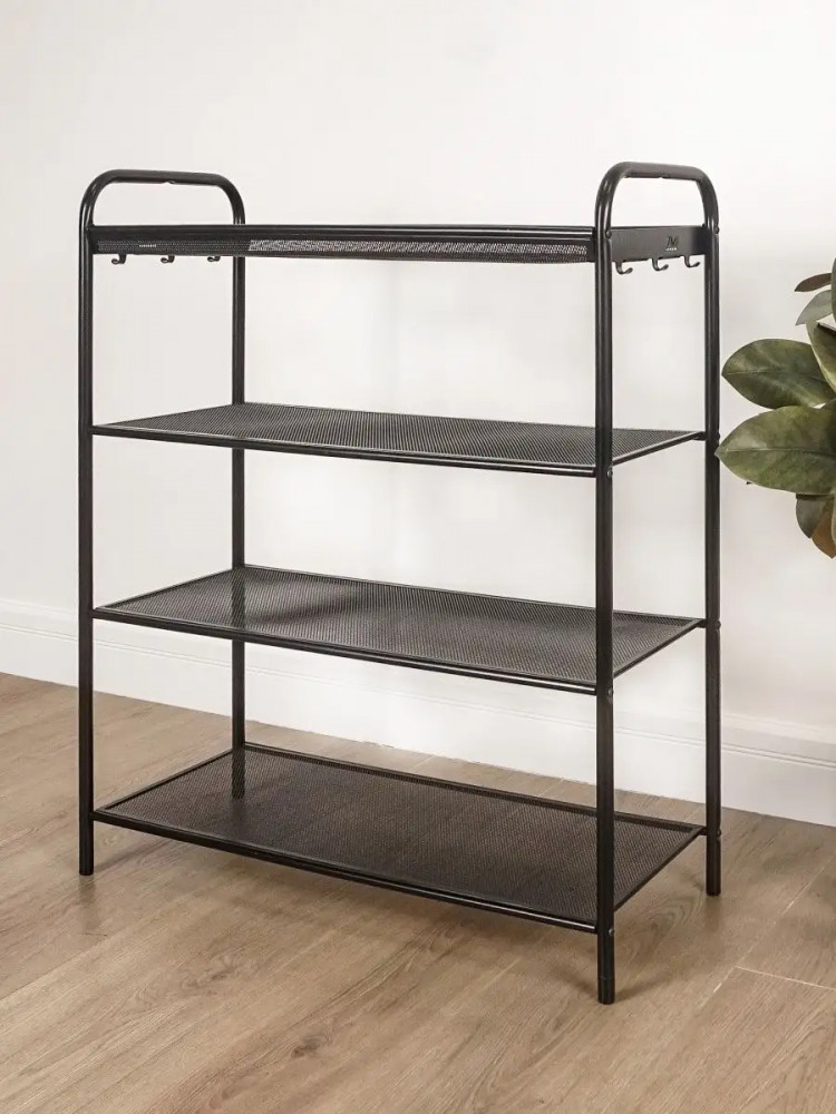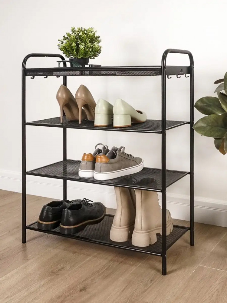 Эта металлическая этажерка для обуви «Верона 24» — отличный выбор для тех, кто любит порядок в доме, офисе или на даче. Она узкая, но вместительная и поможет организовать пространство в гостиной, гардеробной или коридоре. Корпус и полки этажерки сделаны из стали, поэтому она прочная и долговечная. На трёх металлических полках можно разместить до девяти пар обуви. Между полками можно поставить летнюю и зимнюю обувь. Мелкая сетка не даст каблукам провалиться. Эту этажерку можно использовать не только для обуви, но и для хранения других вещей. Каждая полка выдерживает до 8 кг, поэтому вещи будут в безопасности. На верхнюю полку можно положить мелочи, а на боковые крючки — обувную ложку, зонт и ключи. Собрать этажерку легко, для этого есть инструкция. В комплекте есть всё необходимое. Полка упакована в прочную коробку с ручкой, поэтому её удобно перевозить. Эта этажерка — отличный подарок для тех, кто любит порядок.