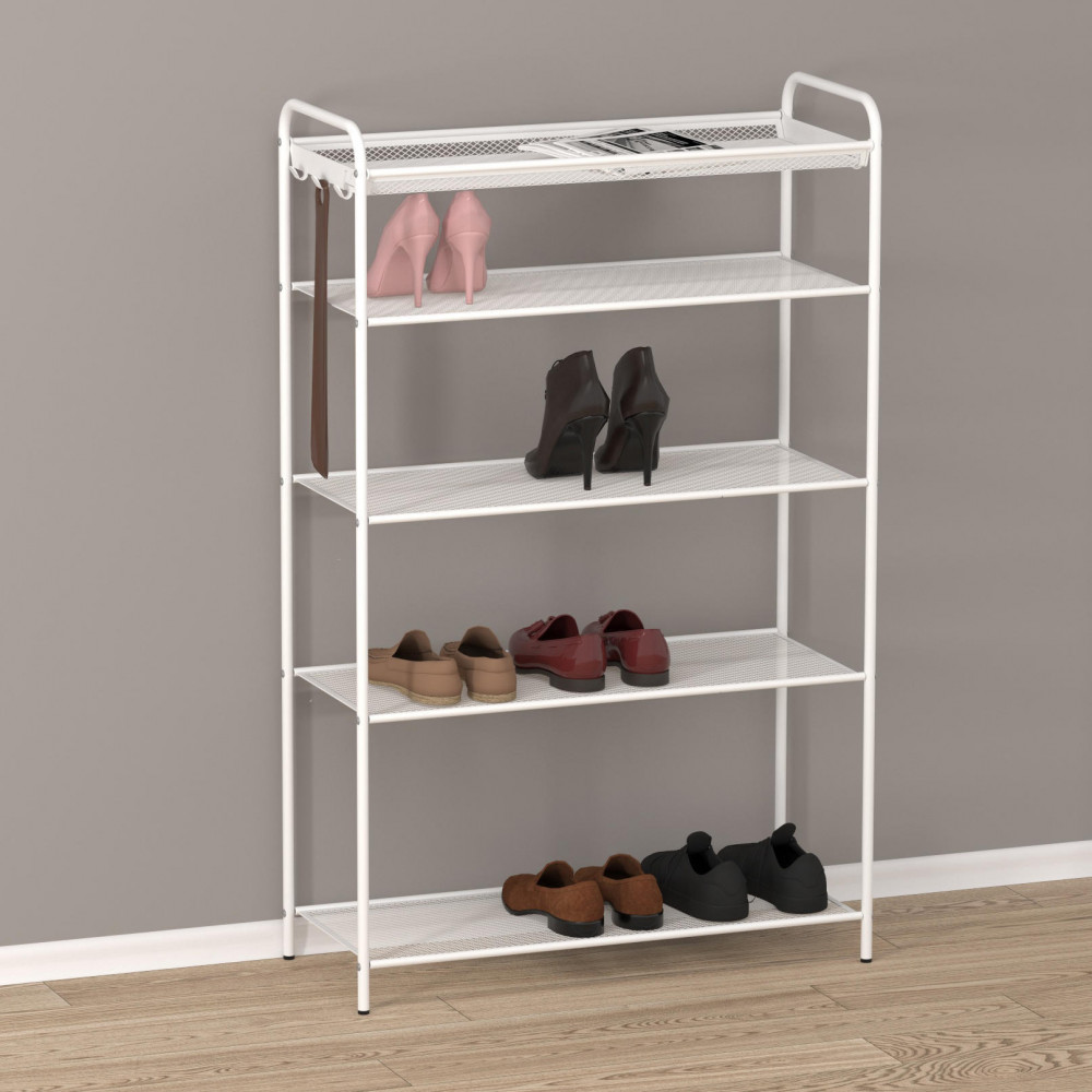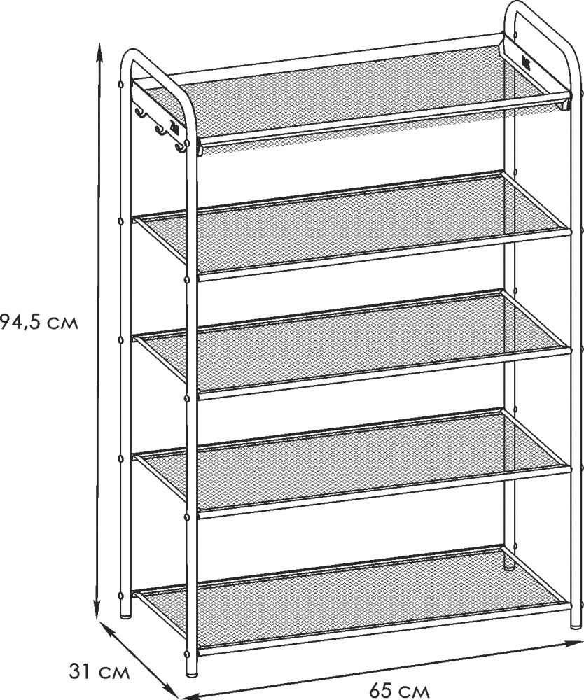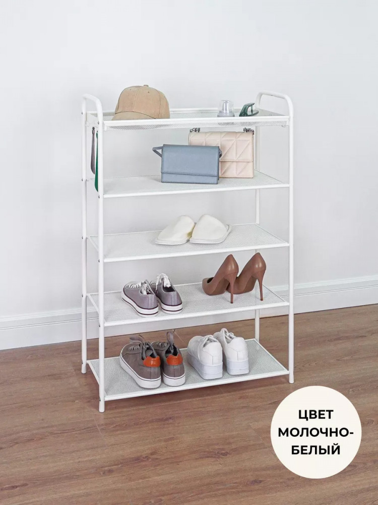 Верона 25 — это открытая многоуровневая система хранения, оснащенная крючками для сумок, ключей и ложкой для обуви. Она выполнена из прочной стали с полимерным покрытием, что обеспечивает ей долговечность и надежность. 4 глубокие полки из металлической сетки обеспечивают отличную вентиляцию, позволяя обуви быстро сохнуть. Максимальная нагрузка — до 8 кг на полку. Верхняя полочка идеально подходит для хранения кремов, щеток и других мелочей. Ножки обувницы не скользят и не царапают пол, создавая безопасное и комфортное пространство. Эта модель представлена в трех цветах: черном, графите и молочно-белом. Темный цвет практичен, а светлый — элегантен. Открытая стенка идеально сочетается с любой мебелью, становясь стильным украшением вашего интерьера. Узкая и компактная, эта обувница прекрасно подходит для малогабаритных квартир, офисов и студий. Этажерка поставляется в прочной картонной упаковке и комплектуется всеми необходимыми деталями.
