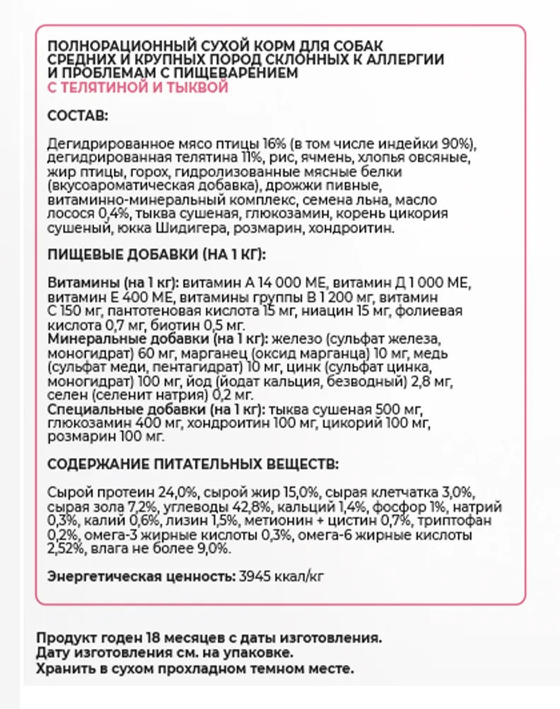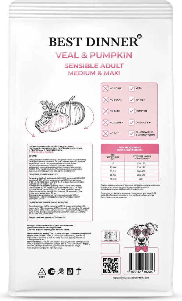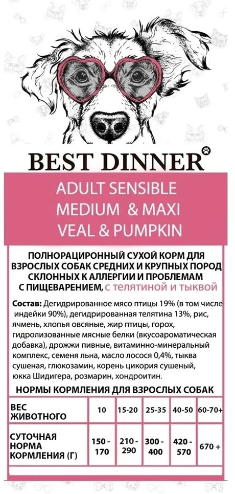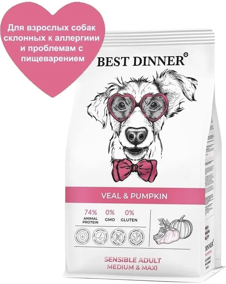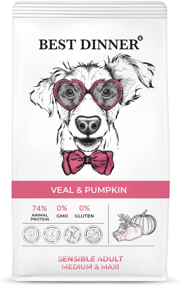 Best Dinner Корм для собак с телятиной и тыквой «Sensible Adult Medium & Maxi»