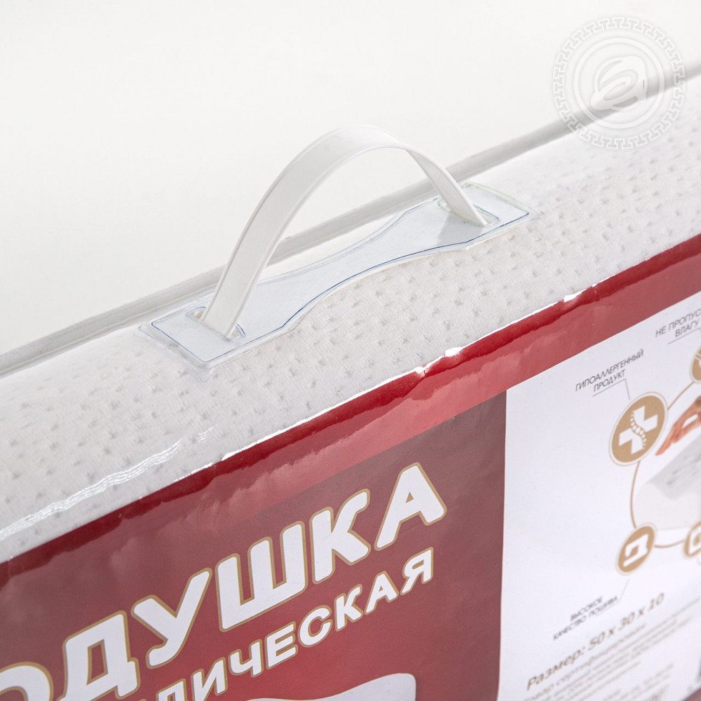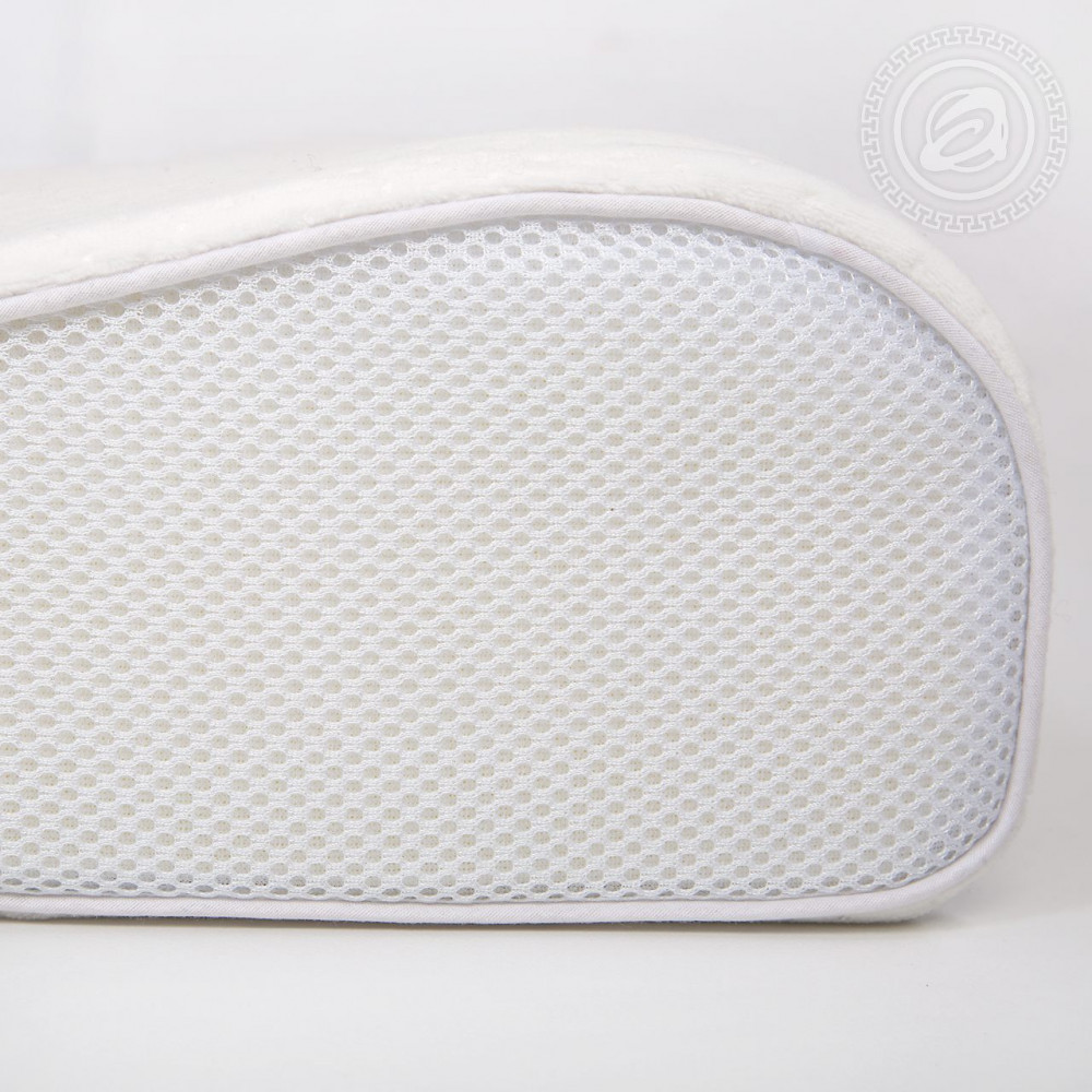 Изделие имеет два подшейных валика разной высоты, которые разработаны с учетом анатомических особенностей человека. Данная конструкция изделия позволяет принимать правильное положение тела во время отдыха. Подушка хорошо подходит для сна на боку и на спине. Внешний чехол на молнии, выполнен из мягкой и приятной на ощупь трикотажной ткани, в составе которой натуральный хлопок и термоскрепленное волокно бамбука. Чехол можно легко снять и постирать.