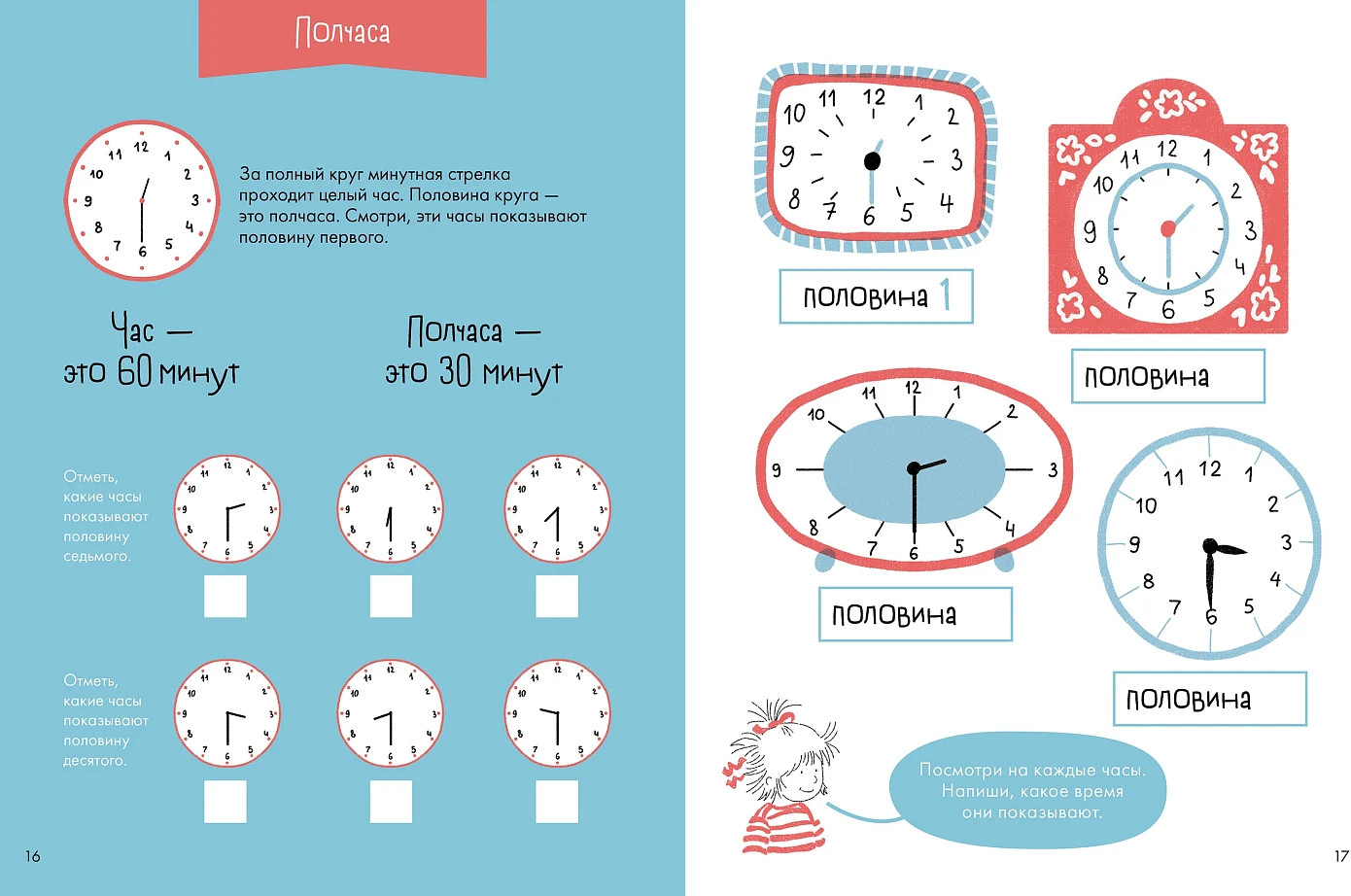 Учим время. Час, полчаса, четверть часа. Знакомимся с часами и учимся определять время+30