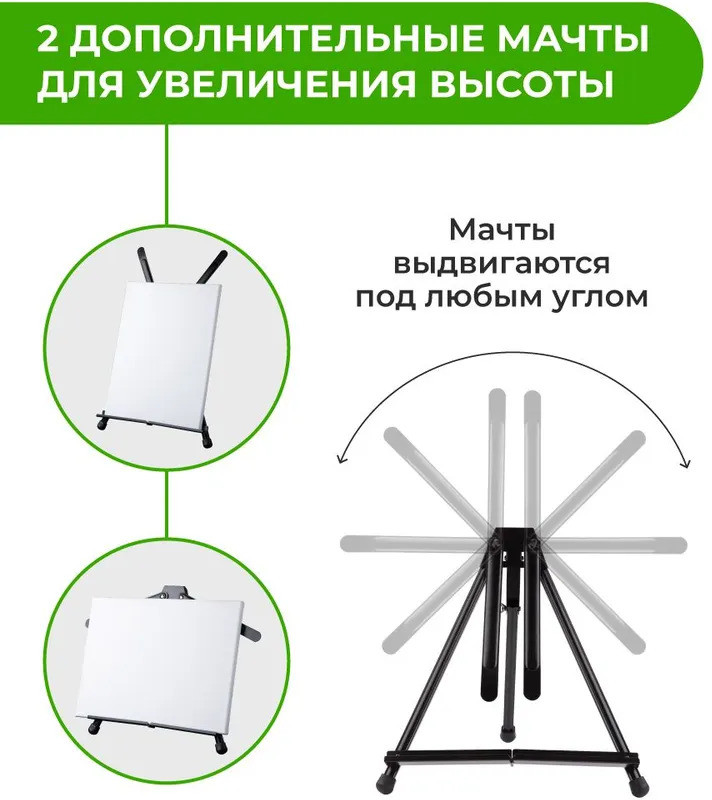 💳 Оплатить за товар можно при получении 🇰🇿 Есть бесплатная доставка по Казахстану от 1 дня 🎁 Копите бонусы с каждой покупки Мольберт настольный тренога Малевичъ идеальное сочетание легкости, надежности и комфорта. Тренога для рисования изготовлена из алюминия. Благодаря своей компактности мольберт легко помещается на рабочем столе, не занимая много места. Алюминиевый сплав обеспечивает легкость и прочность конструкции. Мольберт для художника рассчитан на работу с холстами до 60 см. Для установки холстов разного размера мольберт оснащен удобными регулируемыми подвижными опорами. Мольберт складной удобен в хранении и для транспортировки. Такой мольберт не занимает много места и его удобно использовать в ограниченном пространстве, в школе или художественной студии. Тренога Малевич станет незаменимым помощником как юным художникам, так и профессионалам. |