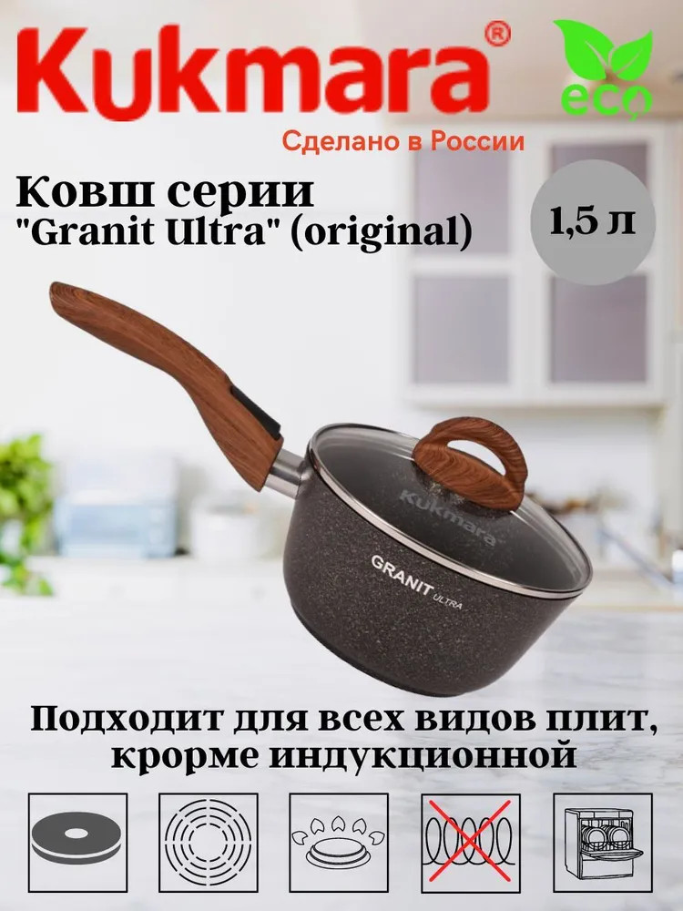 Оцените все достоинства ковша 1,5 литра со съемной ручкой и носиком коллекции Granit Ultra от бренда Kukmara: