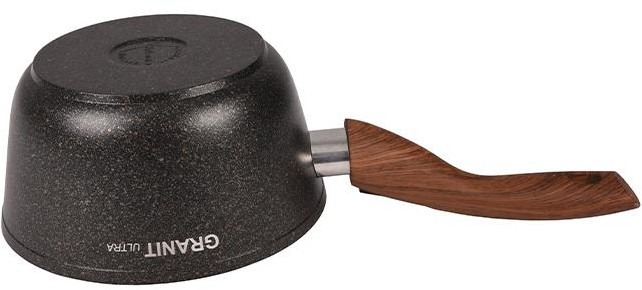 Инновационное антипригарное покрытие Ultra Granit экологически чистое и безопасное для здоровья. Оно изготовлено без применения PFOA (перфтороктановой кислоты). Природные кристаллические минералы, близкие по твердости граниту, делают внутренне покрытие твердым и износостойким. Посуда оснащена удобным носиком, для направления слива жидкости в одном месте, это помогает сохранить чистоту на кухне и сэкономить продукты. Кроме этого, ковш оснащается эргономичной съёмной бакелитовой ручкой с покрытием soft touch, которое придаёт защиту от термических воздействий и не допускает выскальзывания из рук. В комплекте также присутствует крышка из термостойкого стекла с бакелитовой ручкой.