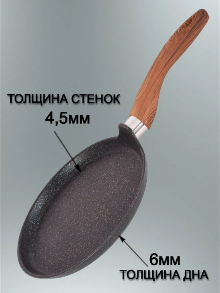 💳 Оплатить за товар можно при получении 🇰🇿 Есть бесплатная доставка по Казахстану от 1 дня 🎁 Копите бонусы с каждой покупки Серия: Granit Ultra Induction Сковорода блинная Kukmara линейки «Ultra granit induction». Инновационное невероятно прочное антипригарное покрытие, усиленное сверхтвердыми минералами нового поколения, близкими по твердости алмазу. Благодаря особой технологии прочность покрытия позволяет использовать даже металлические кухонные принадлежности, не боясь повредить поверхность. Мелкие царапины и небольшие потертости на поверхности, не влияют на свойства антипригарного покрытия и долговечность посуды! Покрытие «Ultra granit» продлевает срок службы посуды более чем в 7 раз! Антипригарное мраморное покрытие наносится методом напыления, который гарантирует исключительную стойкость покрытия при эксплуатации. Экологически безопасное антипригарное покрытие без содержания PFOA. Ненагревающаяся ручка из бакелита! Процесс приготовления еды приятнее вместе с посудой Kukmara! |
