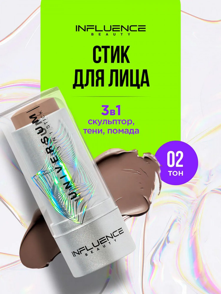 Influence Beauty Стик для лица 3в1 «Universum», оттенок 02 Нейтрально-коричневый