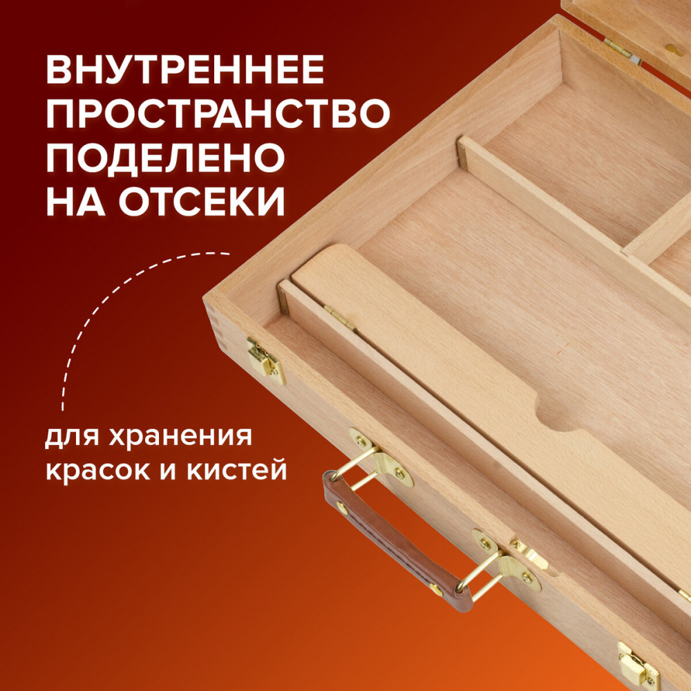 💳 Оплатить за товар можно при получении 🇰🇿 Есть бесплатная доставка по Казахстану от 1 дня 🎁 Копите бонусы с каждой покупки Серия: Art Classic Этюдный ящик Brauberg Art «Classic» предназначен для выполнения этюдов масляными красками или акварелью. Дает возможность работать на холсте и картоне в условиях мастерской и на пленэре. Будет полезен тем, кто осваивает живописные приемы. Изготовлен из натурального бука, пропитанного маслом, с применением качественной фурнитуры. Внутреннее пространство этюдного ящика поделено на отсеки для хранения кистей и красок. Ящик укомплектован палитрой. Оснащен удобной ручкой для переноски. Размер в сложенном виде — 40×31×8 см. Вес — 2 кг. Упакован в белую коробку. |