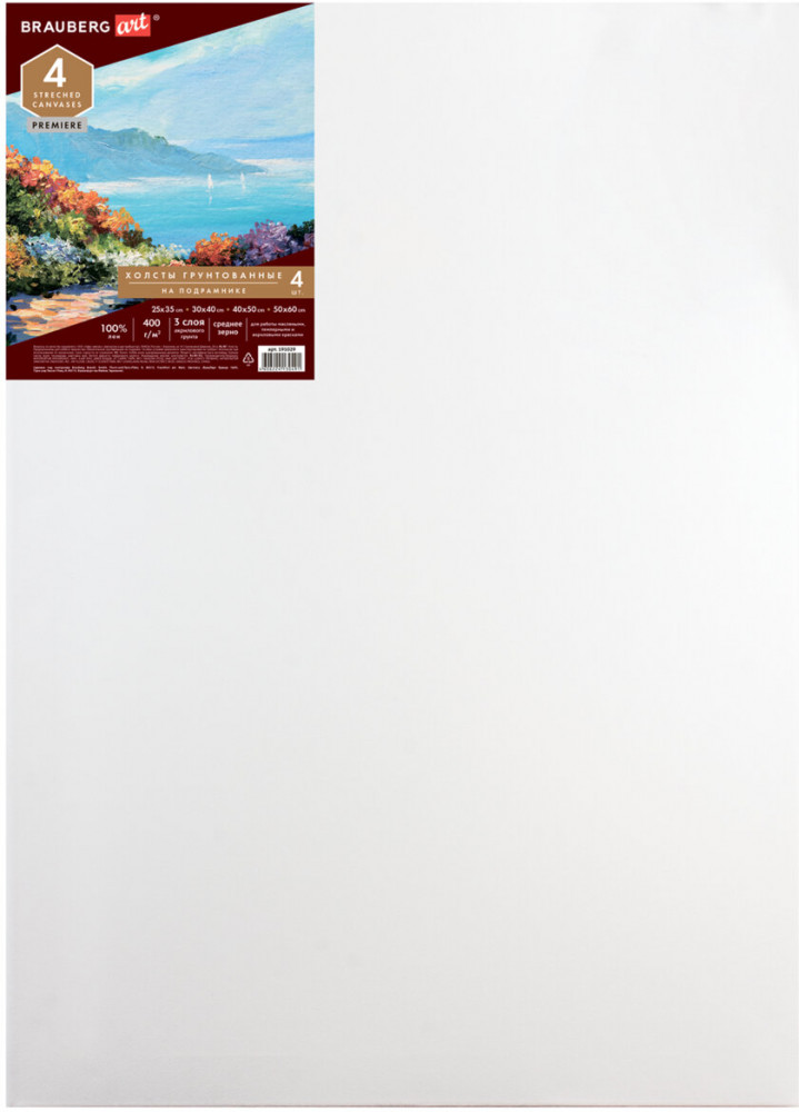 💳 Оплатить за товар можно при получении 🇰🇿 Есть бесплатная доставка по Казахстану от 1 дня 🎁 Копите бонусы с каждой покупки Холсты на подрамнике Brauberg используются для работы масляными, темперными и акриловыми красками. Предназначены для учеников и студентов художественных школ, художников. Изготовлены из 100% льна плотностью 400 г/м2. Льняное полотно превосходит хлопковое в устойчивости к механическим повреждениям за счет более длинных и прочных волокон. Среднезернистая фактура обеспечивает холстам универсальность в использовании, позволяет писать в различных техниках. Односторонний трехслойный акриловый грунт позволяет сохранить цвета неизменными, не допуская их прожухания. Холсты прямоугольной формы на подрамниках полностью готовы к работе. В наборе — 4 холста разного размера. |