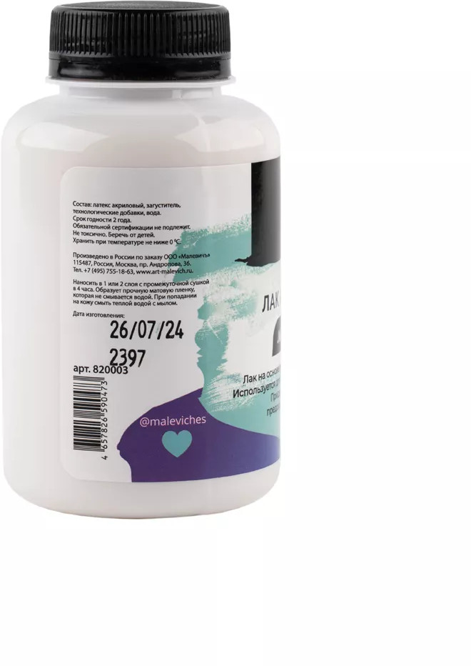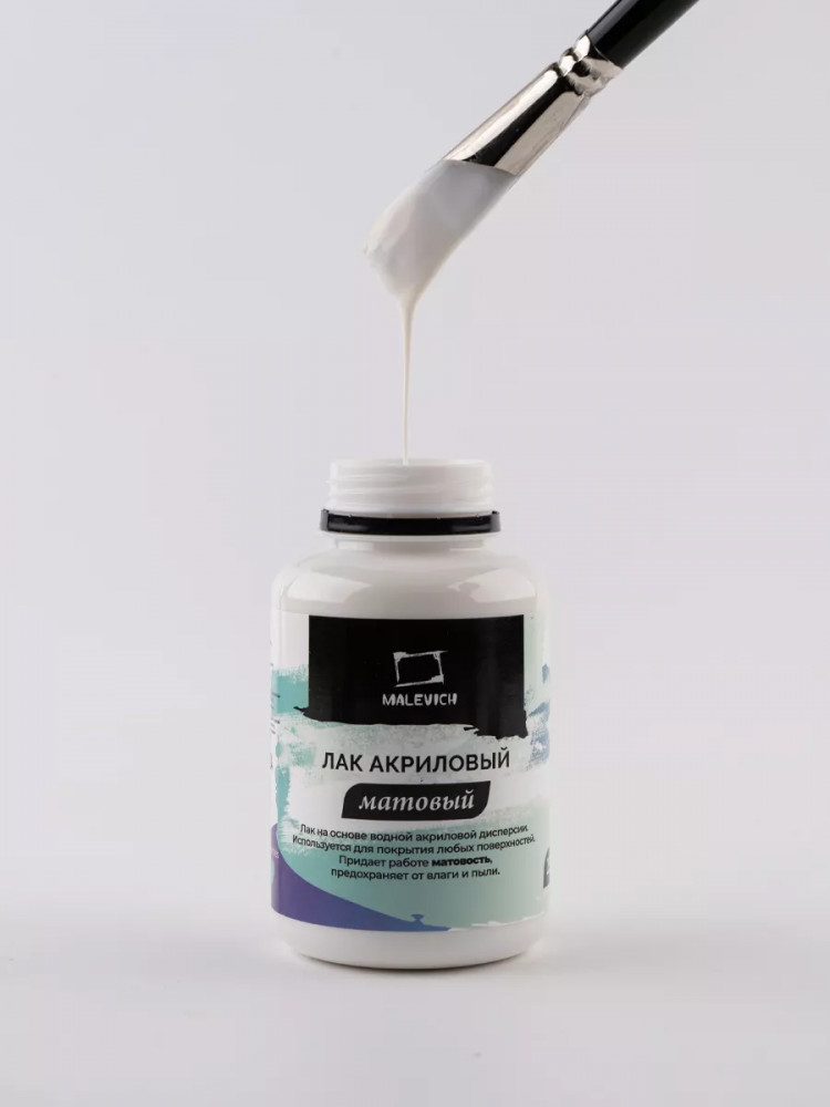 Акриловый лак предназначен для покрытия готовых рисунков или изделий (дерево, пластик, металл, керамика). Защищает поверхность от влаги и пыли. Подходит для покрытия картин выполненных маслом, акрилом. Не подходит для покрытия гуаши, акварели, потали. Белый цвет лака позволяет контролировать площадь покрытия, это позволяет покрыть изделие без проплешин. После высыхания лак становится прозрачным, водостойким. Перед покрытием изделия рекомендуем проверять совместимость материалов на незаметном участке или черновике. Особенно это относится к разным видам глин: полимерной, самозатвердевающей, зефирной.