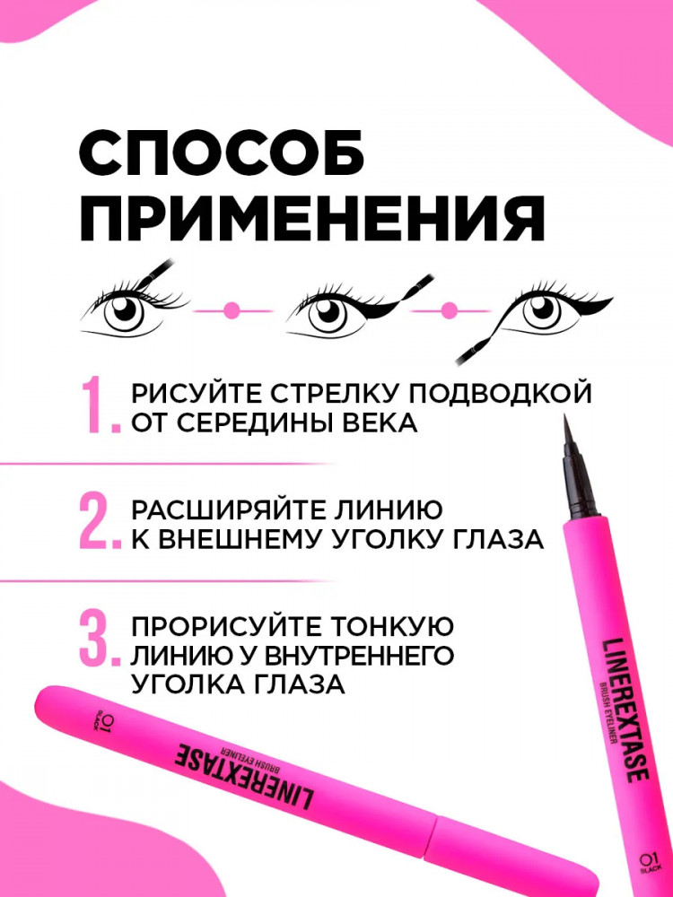 Отзывы «Подводка для глаз водостойкая с кисточкой «Linerextase», оттенок 01 Черный»