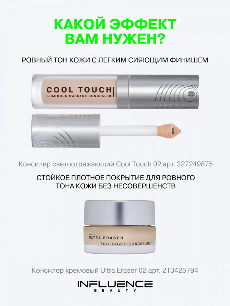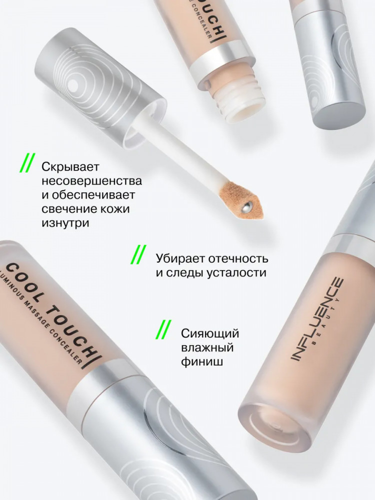 Influence Beauty Консилер для лица массажный «Cool Touch», оттенок 02 Светло-бежевый