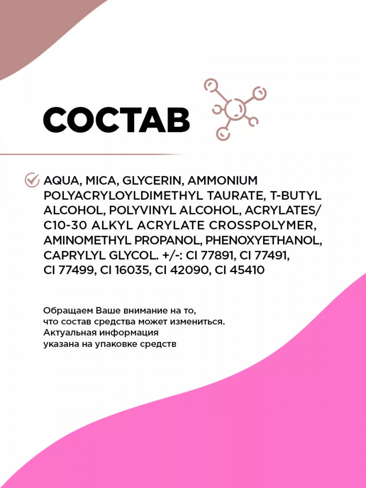 Мало того, что товар пришел вскрытый, (внутри отпечатки засохшего продукта, которого при первом вскрытии быть не должно😡) так и цвет ещё отвратительный. Он не коричневый, он розовый (на этикетке так и написано матовый розово-бежевый)! Забиваются в складочку и скатываются. Наверное будет хорош как румяна, нужно пробовать.
