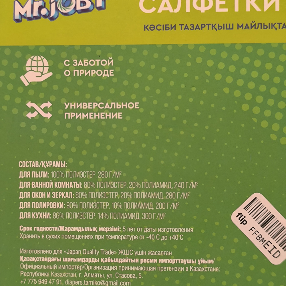 💳 Оплатить за товар можно при получении 🇰🇿 Есть бесплатная доставка по Казахстану от 1 дня 🎁 Копите бонусы с каждой покупки Универсальный набор салфеток из качественной микрофибры размером 30×30 см подходит для всех типов поверхностей в доме. В комплекте 5 салфеток, каждая из которых предназначена для определённой зоны: для удаления пыли, для мытья окон и зеркал без разводов, для кухни — справляется с жиром и налётом, Для полировки мебели, для уборки в ванной — впитывает влагу и удаляет налёт. |