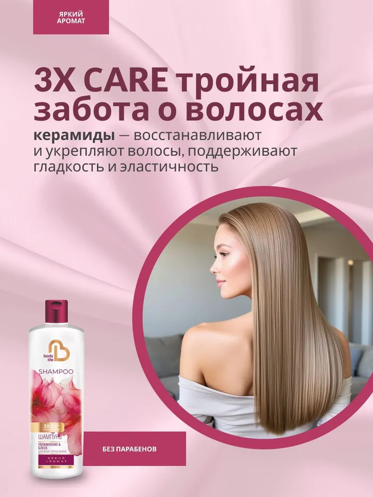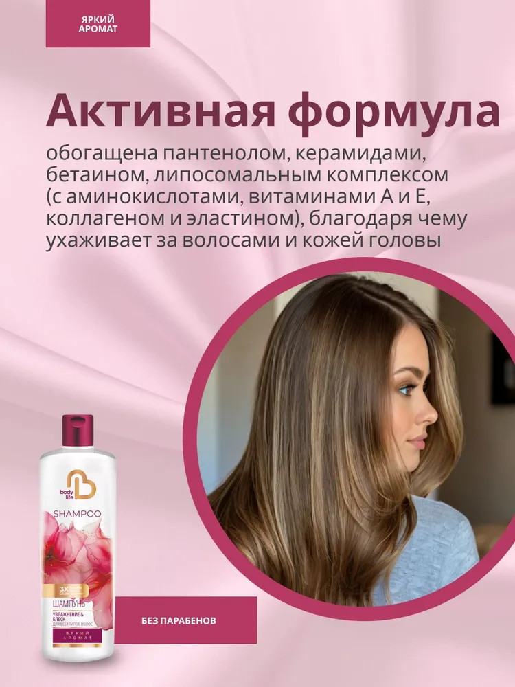 Body Life Шампунь для всех типов волос «Увлажнение и блеск»