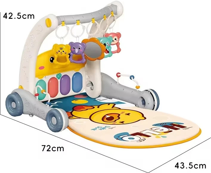 Ну что, готовы отправиться в увлекательное путешествие по миру раннего развития вашего малыша? Тогда эта удивительная многофункциональная каталка Rack & Walker 6049 с ковриком — именно то, что вам нужно. Представьте, как ваш малыш начинает свой путь с мягкого коврика, где ему удобно лежать и играть, пока он еще не научился держать спинку и голову. Но это только начало. Как только ваш маленький герой будет готов сделать первые шаги, каталка превращается в яркие ходунки, которые помогут ему с уверенностью покорять новые вершины.