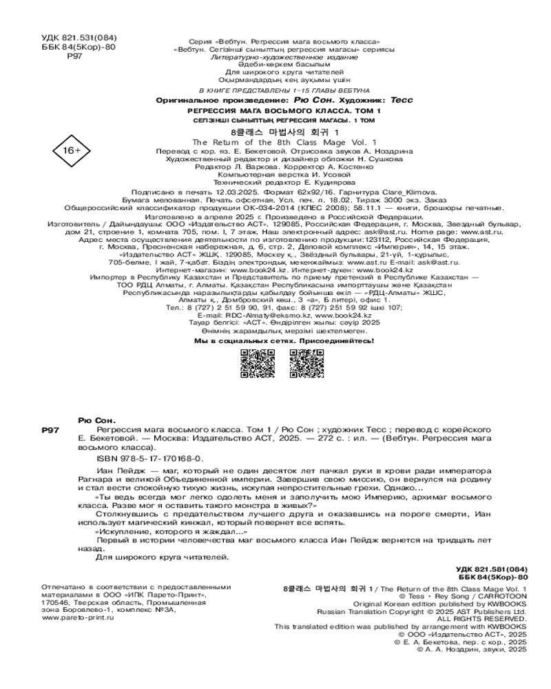 Серия: Вебтун. Регрессия мага восьмого класса Иан Пейдж — маг, который не один десяток лет пачкал руки в крови ради императора Рагнара и великой Объединенной империи. Завершив свою миссию, он вернулся на родину и стал вести спокойную тихую жизнь, искупая непростительные грехи. Однако... |
