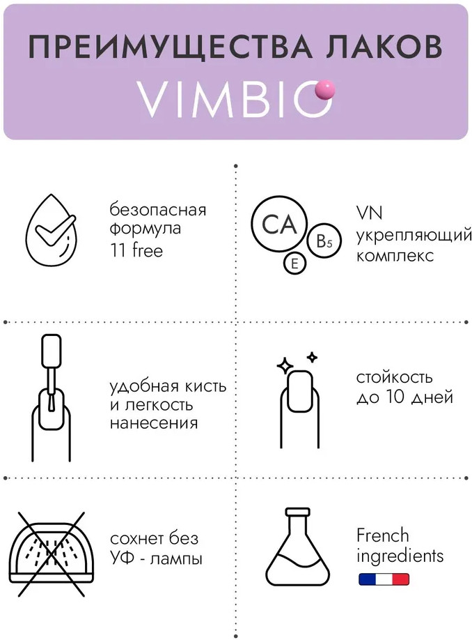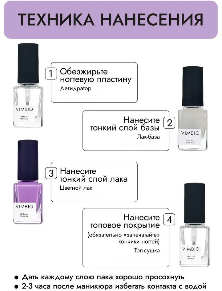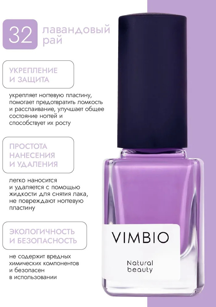 VimBio Лак для ногтей укрепляющий, оттенок 32 Лавандовый рай