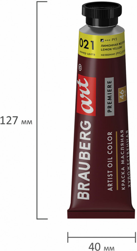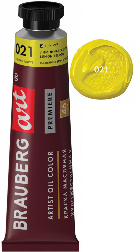 Brauberg Краска масляная художественная, цвет 021 лимонный желтый