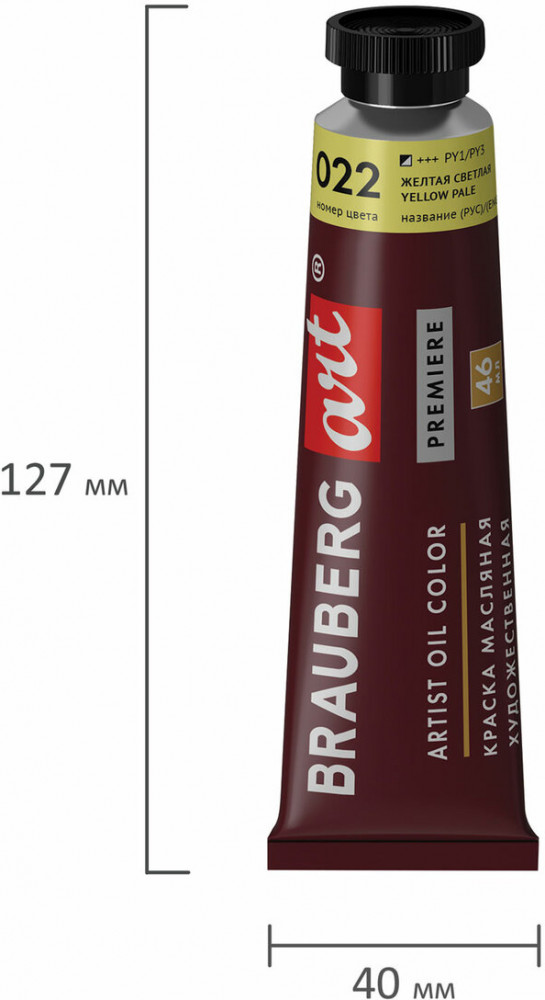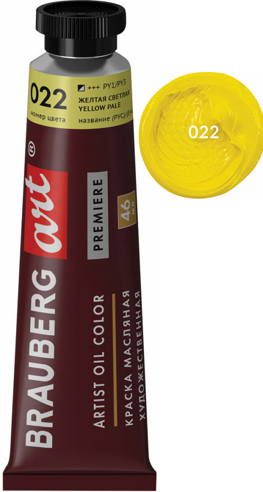 Brauberg Краска масляная художественная, цвет 022 желтая светлая