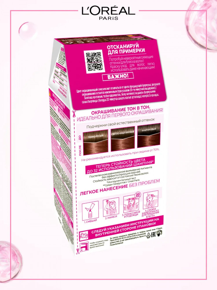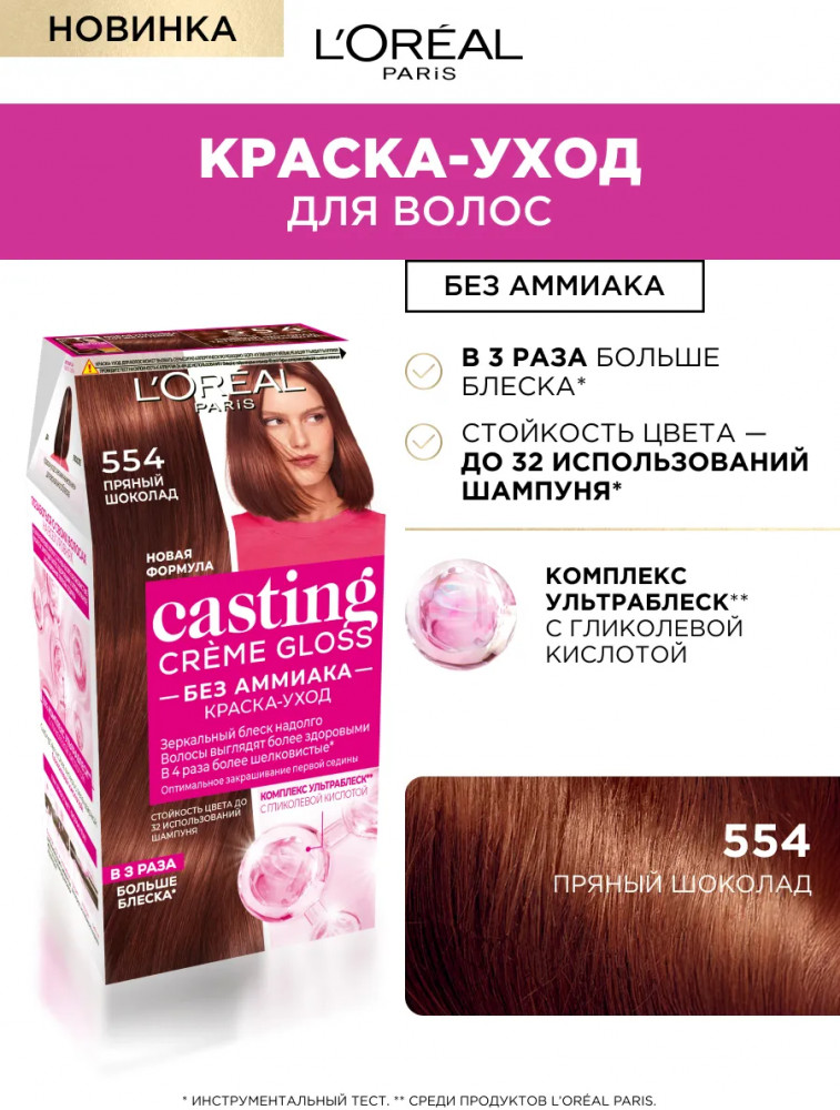 L'Oreal Paris Краска-уход для волос без аммиака, оттенок 554 Пряный шоколад