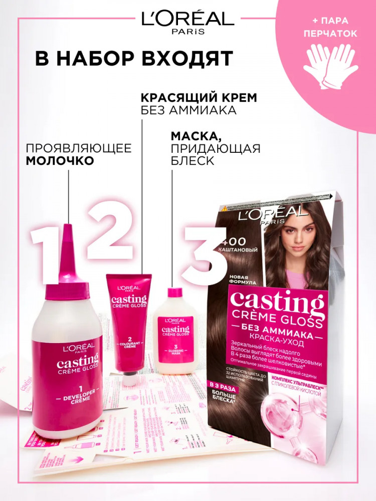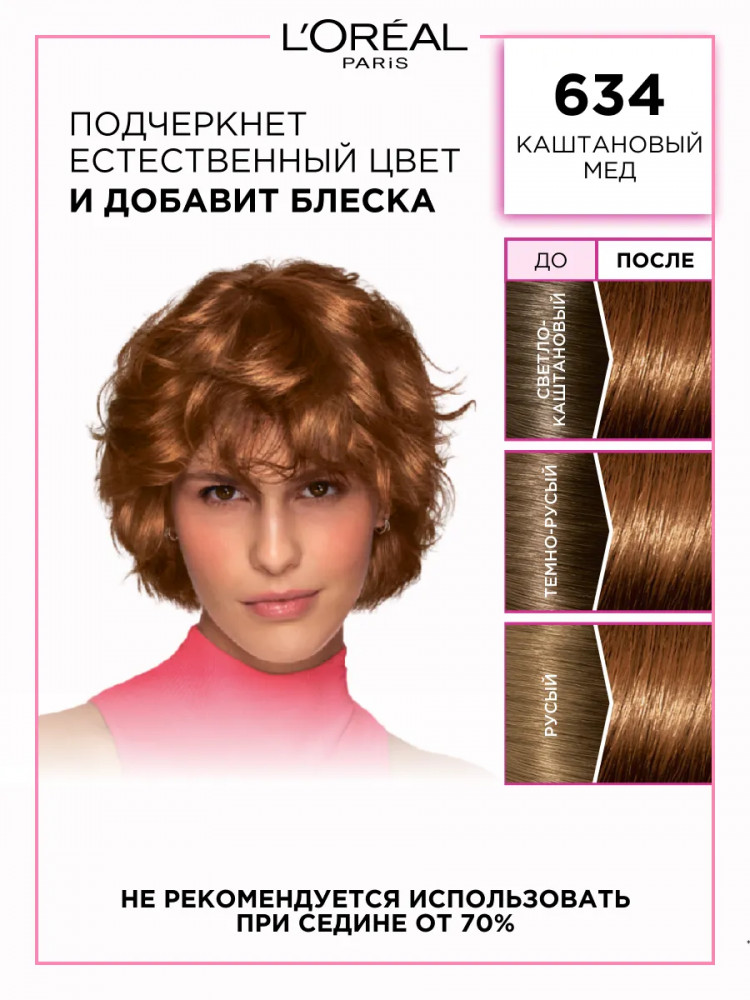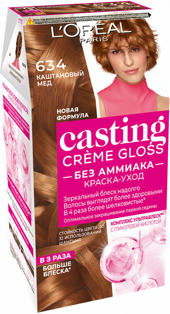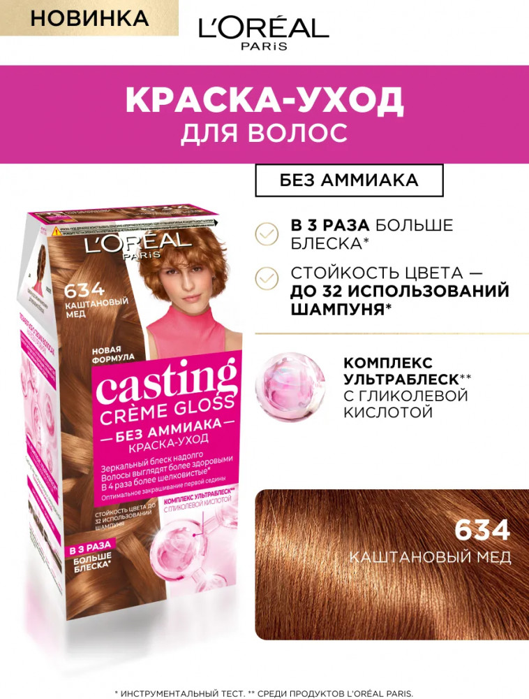 L'Oreal Paris Краска-уход для волос без аммиака, оттенок 634 Каштановый мед