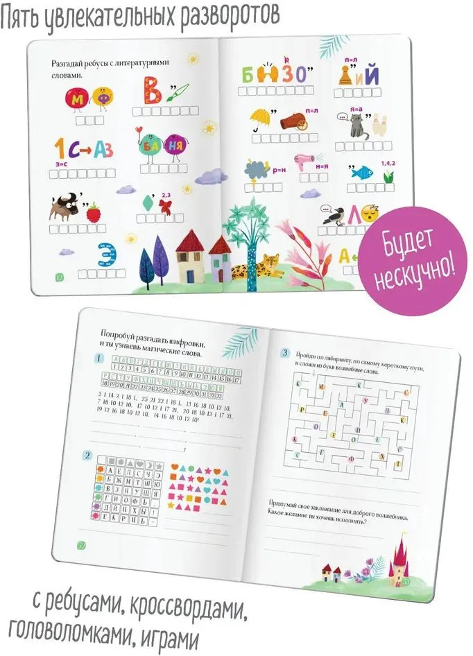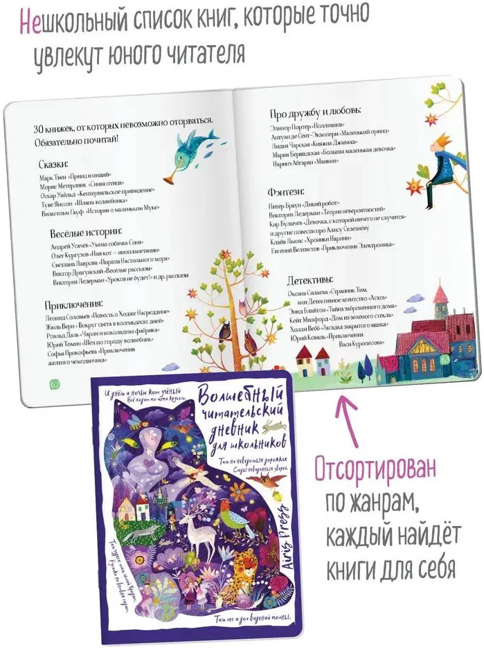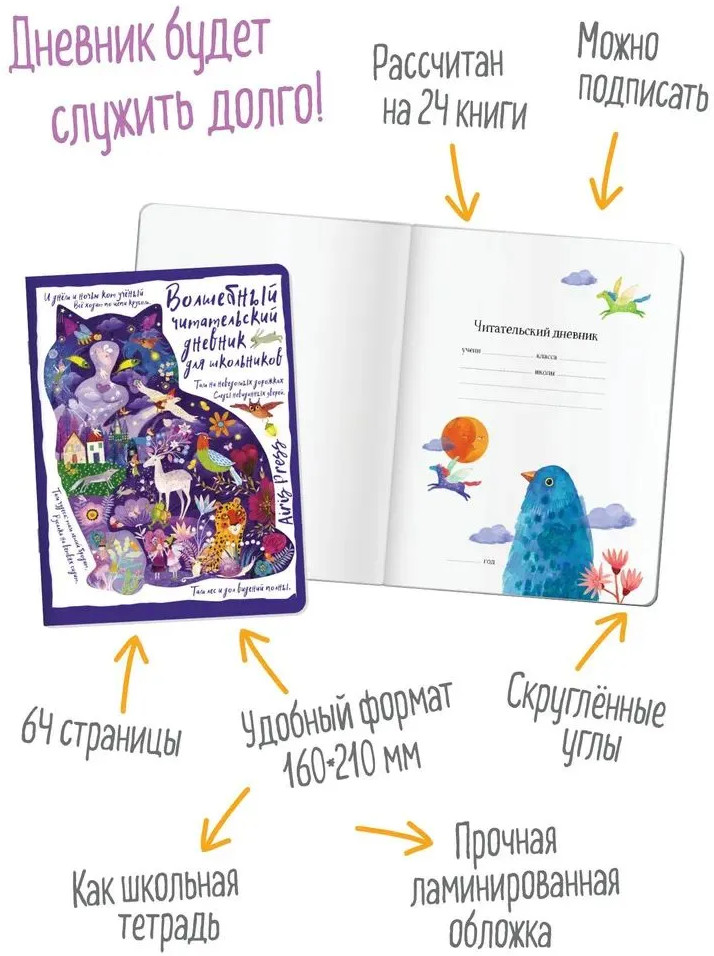 💳 Оплатить за товар можно при получении 🇰🇿 Есть бесплатная доставка по Казахстану от 1 дня 🎁 Копите бонусы с каждой покупки Серия: Читательский дневник Этот читательский дневник хочется заполнять снова и снова. Он поможет ребёнку ещё больше подружиться с книгами. На его страничках ребёнок будет рассказывать о прочитанных книгах, вспоминать главных героев, делиться своими впечатлениями. Обычные странички чередуются с занимательными заданиями: ребусами, кроссвордами, буквенными лабиринтами, играми со словами. А в конце можно будет придумать и записать свою историю, а потом попробовать силы в волшебстве. Адресовано детям от 6 лет. |
