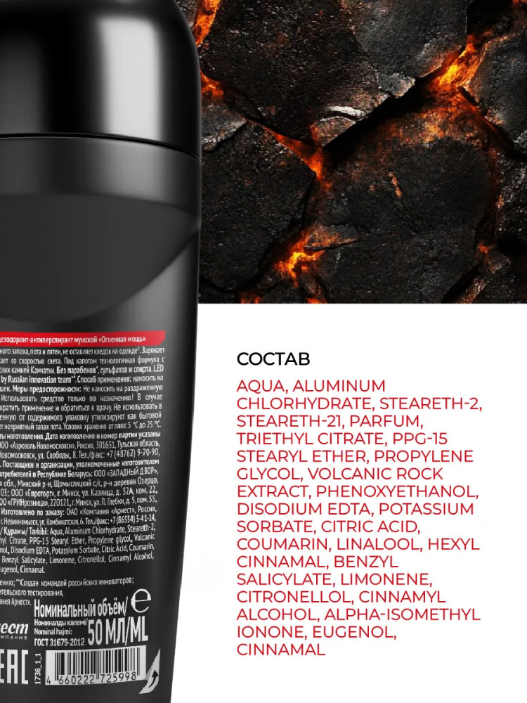LЁD Дезодорант-антиперспирант шариковый мужской «Огненная мощь»