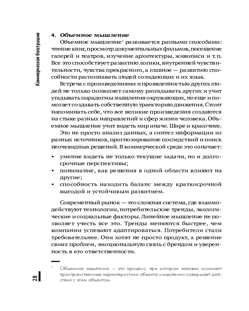 💳 Оплатить за товар можно при получении 🇰🇿 Есть бесплатная доставка по Казахстану от 1 дня 🎁 Копите бонусы с каждой покупки Развивать бизнес без коммерческого мышления все равно что готовить сложное блюдо без рецепта. Можно иметь отличные ингредиенты и навыки, но результат будет непредсказуемым. Проблема в том, что предпринимателей и сотрудников не обучают пониманию и развитию коммерческого мышления. Обычно под ним подразумевают лишь навыки поиска новых рынков сбыта, работы с клиентами и оперирования финансовыми показателями. |