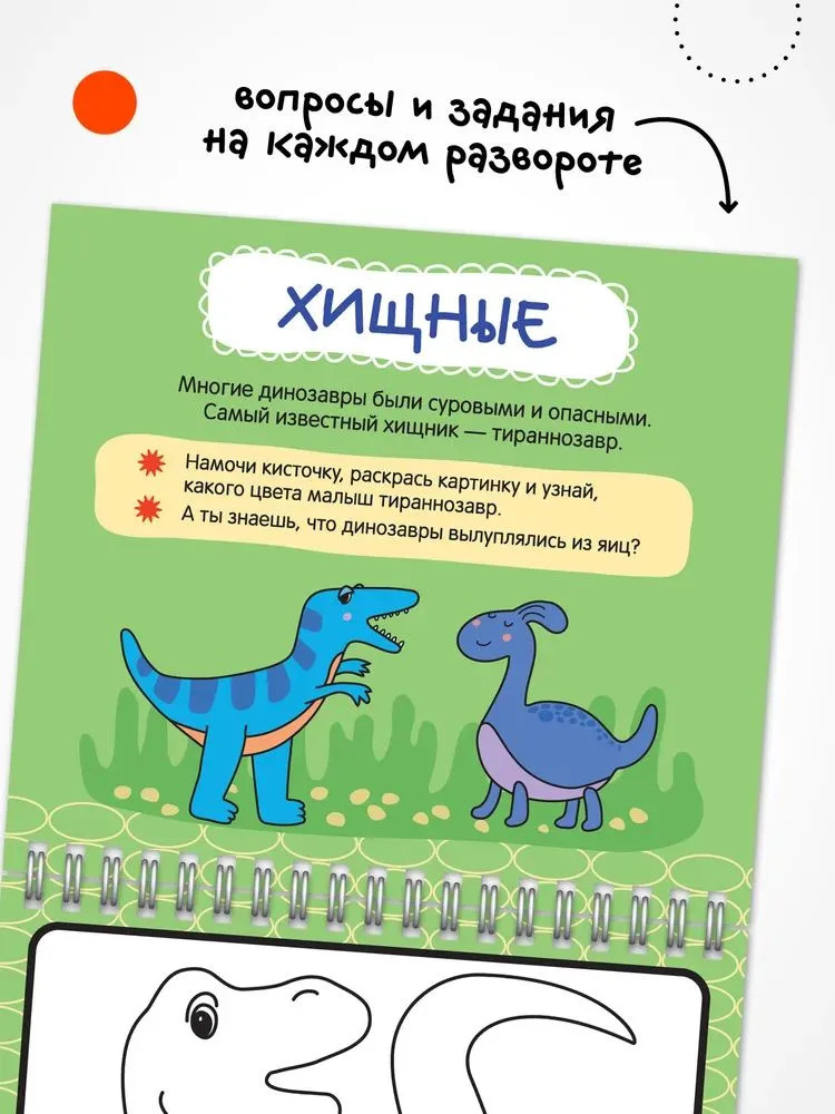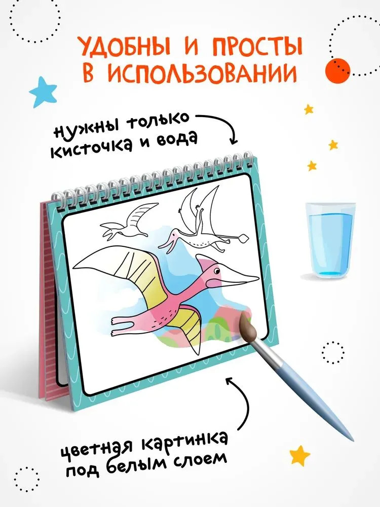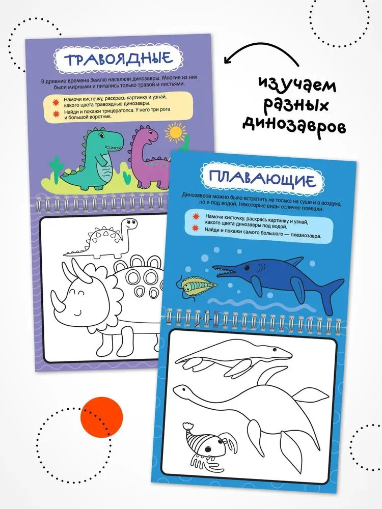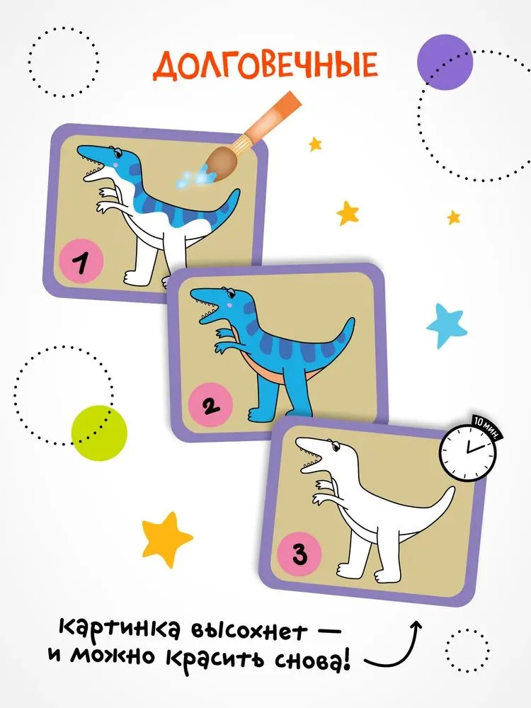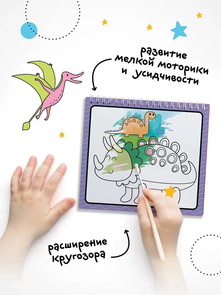Серия: Многоразовые водные раскраски Книга «Динозавры» серии «Многоразовые водные раскраски» — это настоящая находка для юных художников! Странички для раскрашивания сделаны из картона и покрыты специальной краской. При контакте с водой она становится прозрачной, а рисунок — цветным! Стоит лишь провести мокрой кисточкой — и происходит настоящее волшебство. Какого цвета малыш тираннозавр? А сколько динозавров летает в небе? Забавные рисунки точно понравятся ребенку, а сам процесс раскрашивания — не только увлекательное, но и полезное занятие для развития воображения, внимательности и мелкой моторики. |