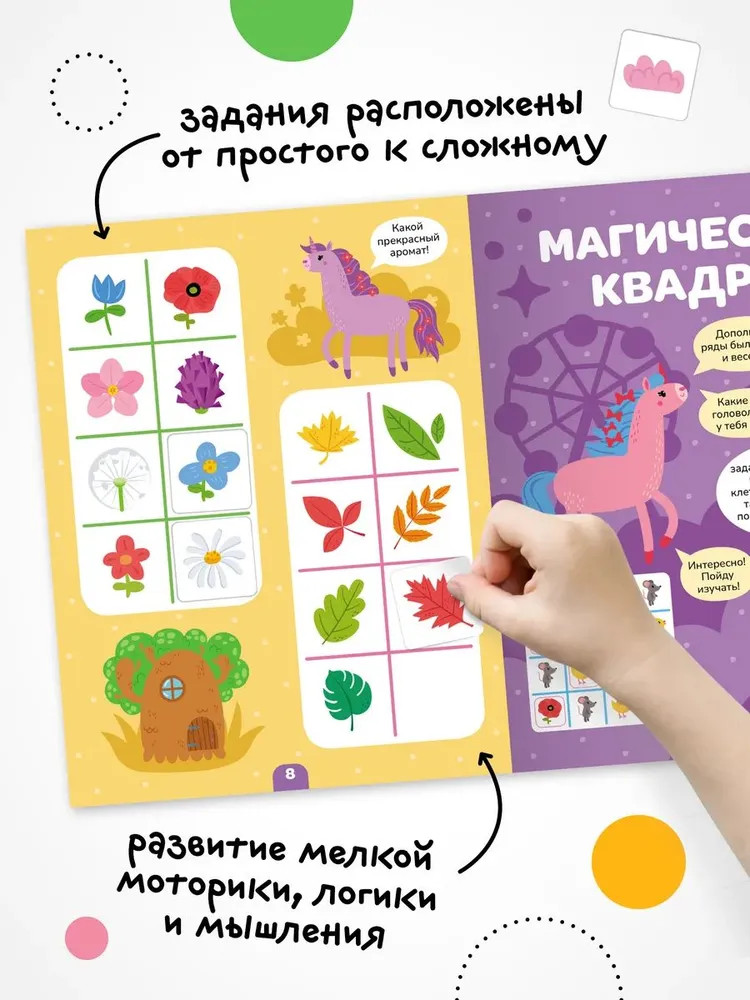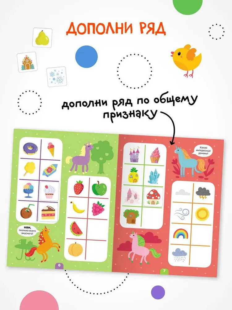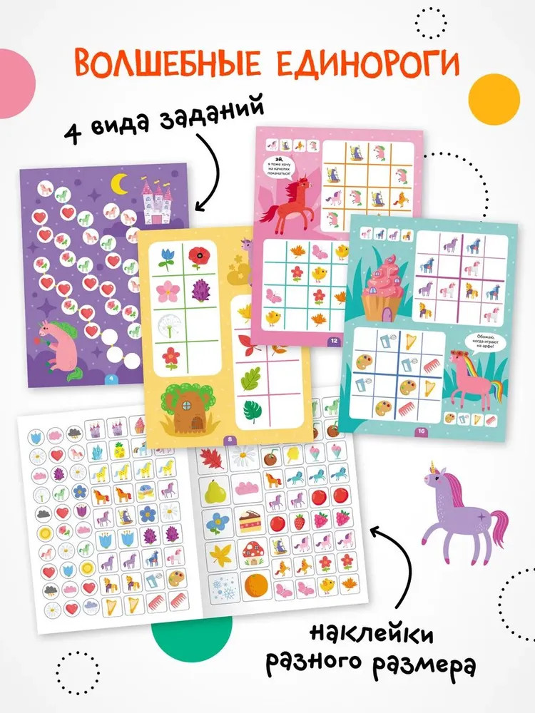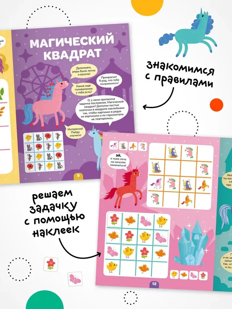 Серия: Логика с наклейками Книга «Единороги» серии «Логика с наклейками» поможет ребенку весело и с пользой провести время, расширить кругозор, потренировать память и логическое мышление. Любимый вид деятельности практически каждого ребенка — клеить наклейки — мы совместили с решением популярных заданий на логику. В каждой книжке четыре вида логических задачек — продолжи ряд, дополни ряд, магический квадрат и судоку. И на каждой страничке ребенка ждут забавные единороги! Задания адаптированы для детей от 4 лет и расположены от простого к сложному. Для детей помладше может понадобиться помощь взрослого, но начиная с 5 лет ребята уже вполне смогут справиться с заданиями самостоятельно. |