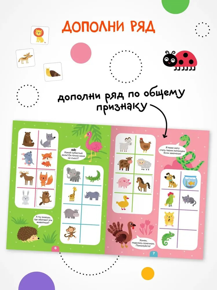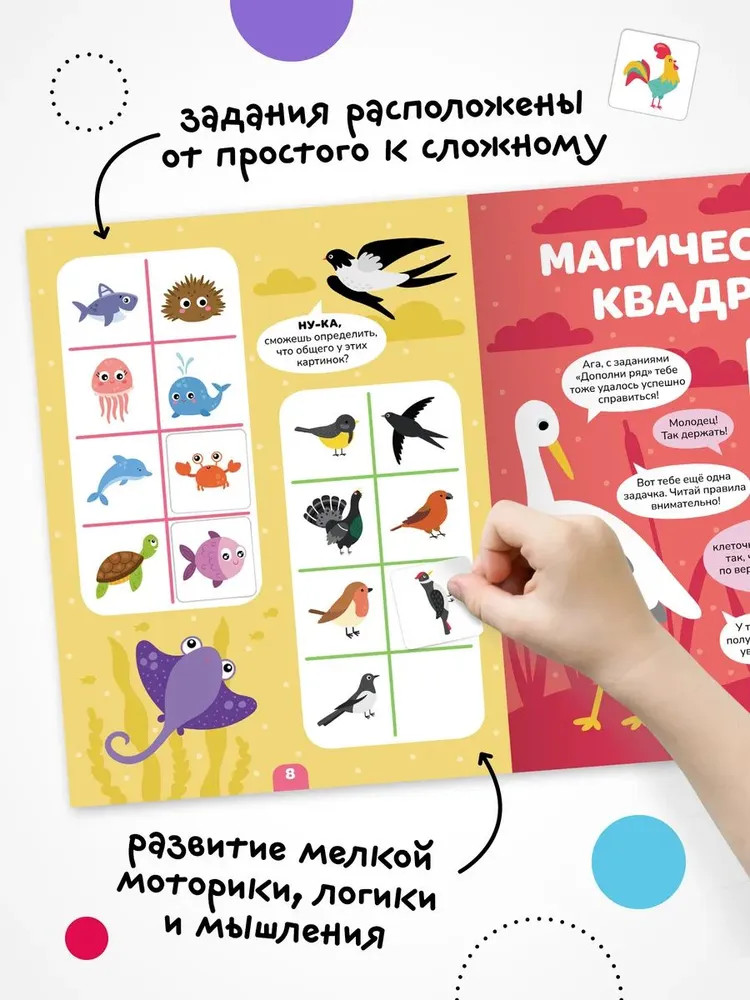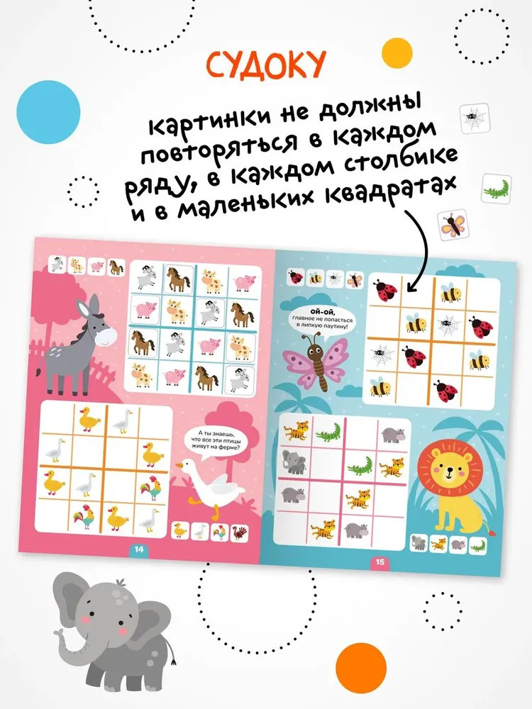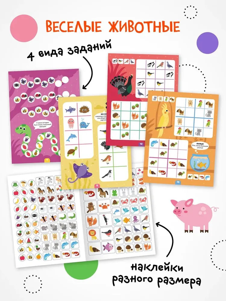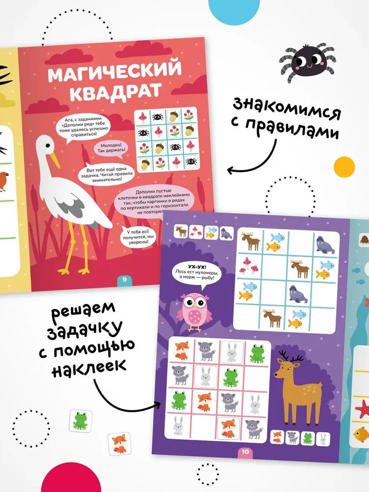 Серия: Логика с наклейками Книга «Животные» серии «Логика с наклейками» поможет ребенку весело и с пользой провести время, расширить кругозор, потренировать память и логическое мышление. Любимый вид деятельности практически каждого ребенка — клеить наклейки — мы совместили с решением популярных заданий на логику. В каждой книжке четыре вида логических задачек — продолжи ряд, дополни ряд, магический квадрат и судоку. И на каждой страничке ребенка ждут веселые животные! Задания адаптированы для детей от 4 лет и расположены от простого к сложному. Для детей помладше может понадобиться помощь взрослого, но начиная с 5 лет ребята уже вполне смогут справиться с заданиями самостоятельно. |