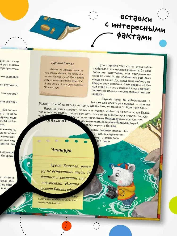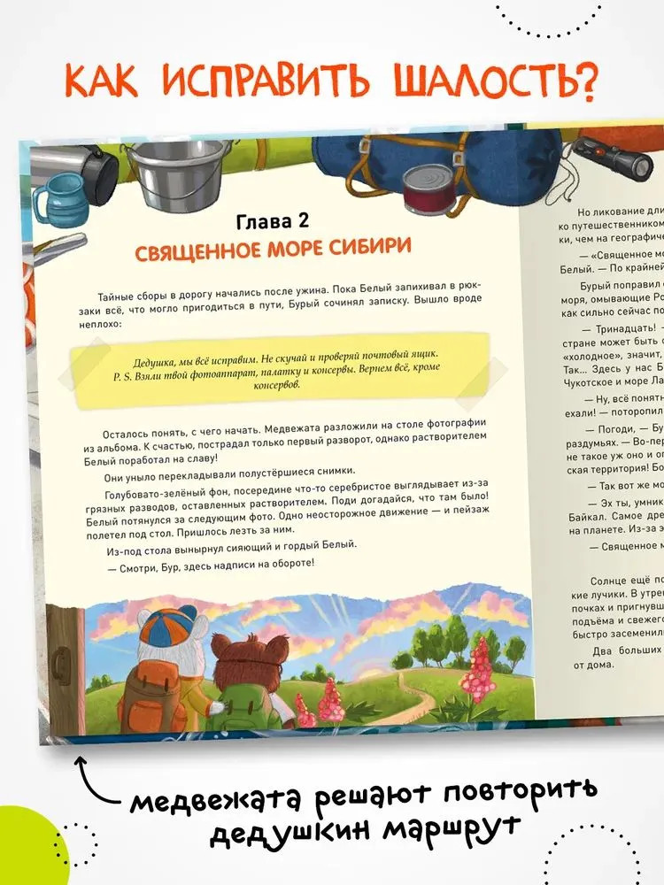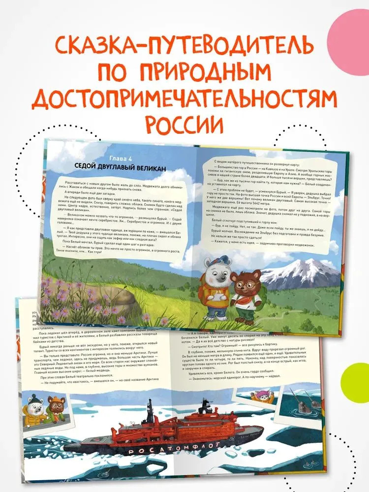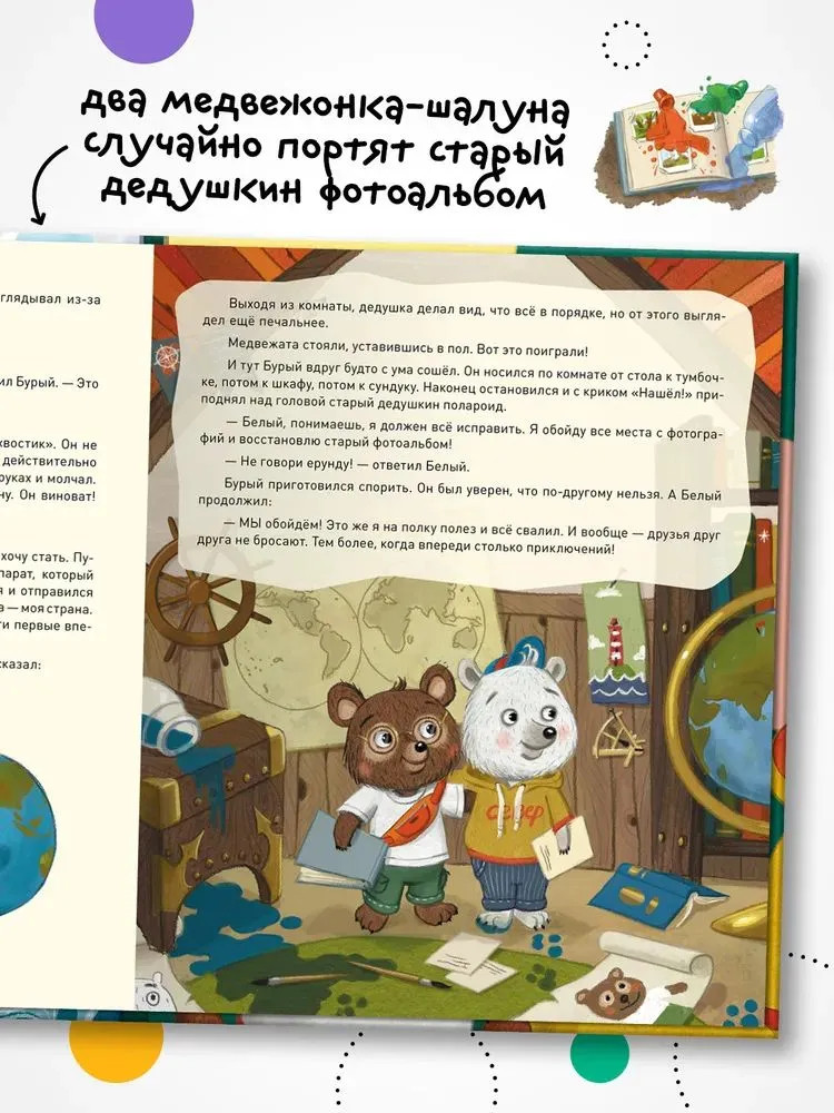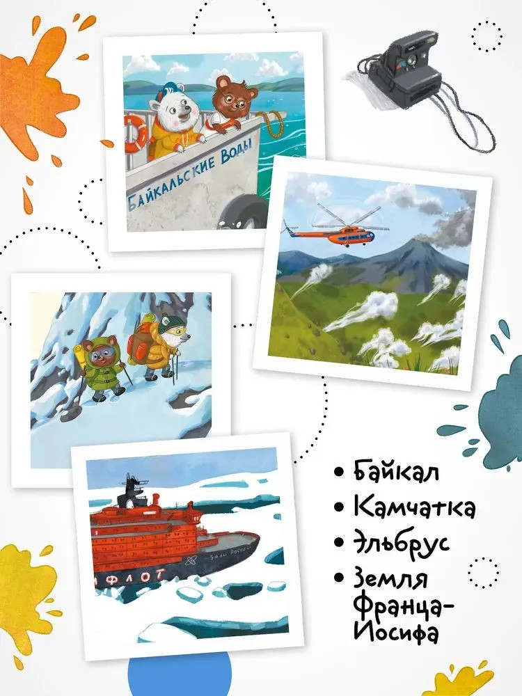 💳 Оплатить за товар можно при получении 🇰🇿 Есть бесплатная доставка по Казахстану от 1 дня 🎁 Копите бонусы с каждой покупки «Загадки старого фотоальбома» — удивительная сказка-путеводитель по природным достопримечательностям России. Два медвежонка-шалуна случайно портят старый дедушкин фотоальбом. Но это не просто фотографии, а настоящая история первого путешествия дедушки по России. Давным-давно, совсем юным, он с фотоаппаратом наперевес изучил самые отдаленные уголки нашей страны — Байкал и Камчатку, забрался на Эльбрус и побывал на Земле Франца-Иосифа. Как же исправить шалость? Медвежата решают повторить дедушкин маршрут. Их ждут невероятные приключения, новые знакомства и удивительные открытия. Скорее открывайте книгу: путешествие начинается! |