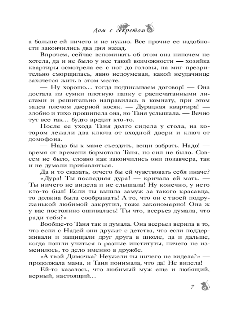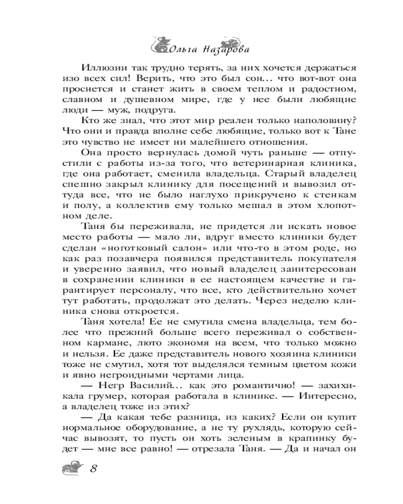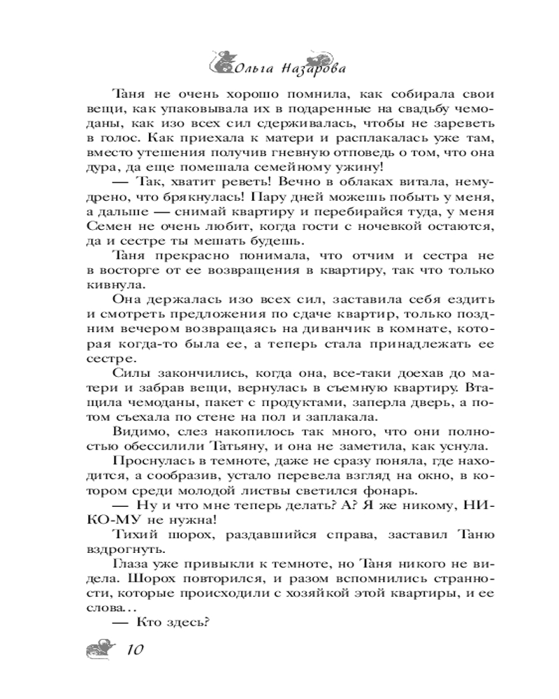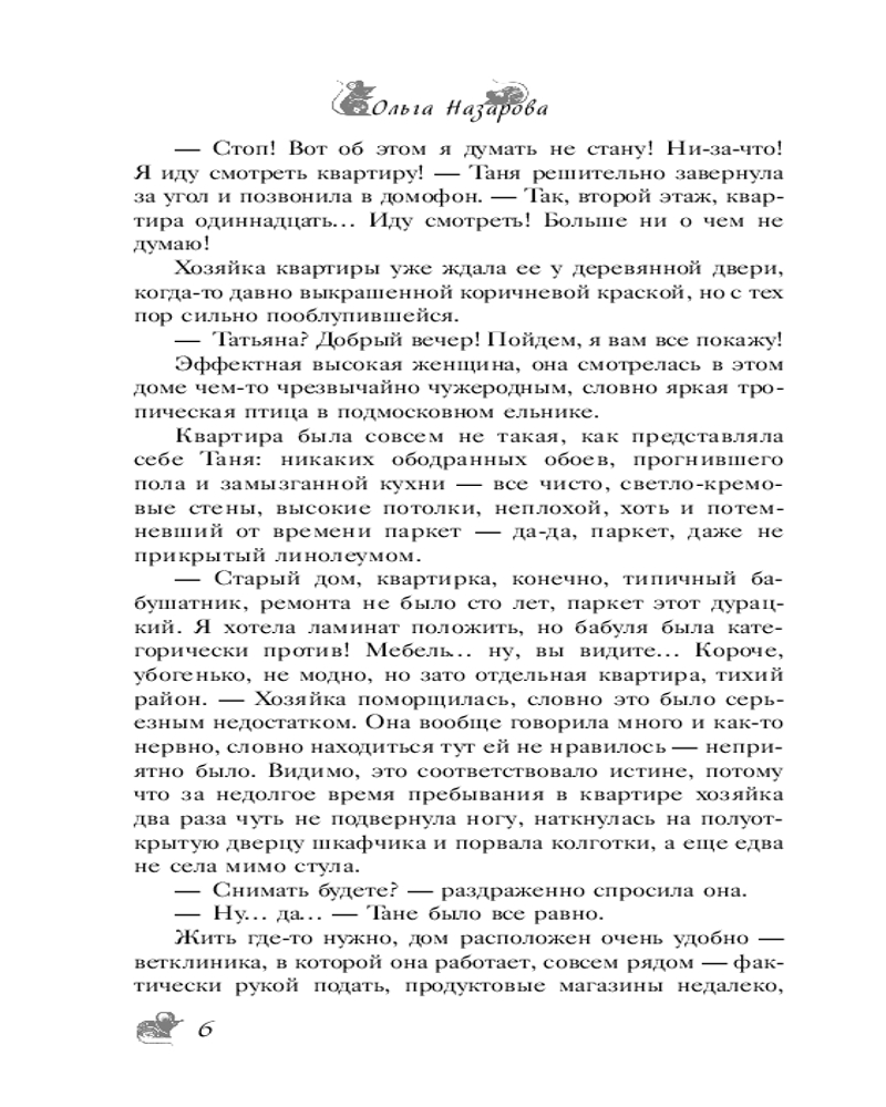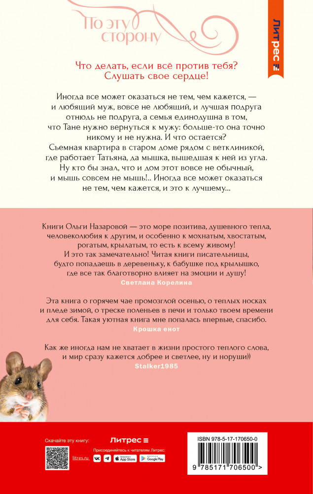 💳 Оплатить за товар можно при получении 🇰🇿 Есть бесплатная доставка по Казахстану от 1 дня 🎁 Копите бонусы с каждой покупки Серия: Будьте добры: роман-антидепрессант Что делать, если всё против тебя? Слушать свое сердце! Иногда все может оказаться не тем, чем кажется — и любящий муж, вовсе не любящий, и лучшая подруга отнюдь не подруга, а семья единодушна в том, что Тане нужно вернуться к мужу: больше-то она точно никому и не нужна. И что остается? Съемная квартира в старом доме рядом с ветклиникой, где работает Татьяна, да мышка, вышедшая к ней из угла. Ну, кто бы знал, что и дом этот вовсе не обычный, и мышь совсем не мышь!.. Иногда все может оказаться не тем, чем кажется, и это к лучшему... |