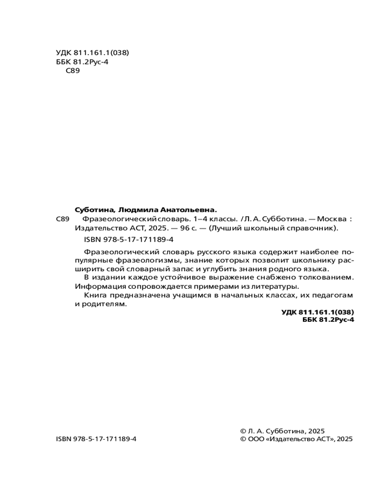 💳 Оплатить за товар можно при получении 🇰🇿 Есть бесплатная доставка по Казахстану от 1 дня 🎁 Копите бонусы с каждой покупки Серия: Лучший школьный справочник Фразеологический словарь русского языка содержит наиболее популярные фразеологизмы, знание которых позволит школьнику расширить свой словарный запас и углубить знания родного языка. В издании каждое устойчивое выражение снабжено толкованием. Информация сопровождается примерами из литературы. Книга предназначена учащимся в начальных классах, их педагогам и родителям. |