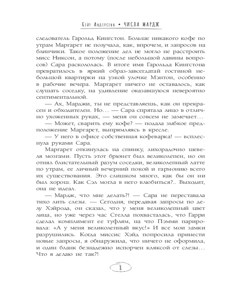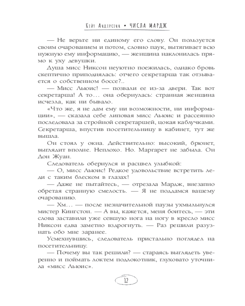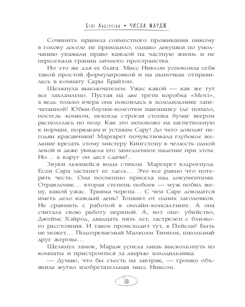 💳 Оплатить за товар можно при получении 🇰🇿 Есть бесплатная доставка по Казахстану от 1 дня 🎁 Копите бонусы с каждой покупки Серия: Очень частный детектив Шотландский городок Пейсли. Поддавшись случайному импульсу, Маргарет Никсон привлекает к себе пристальное внимание следователя прокуратуры Гарольда Кингстона, и данное знакомство втягивает девушку в одну детективную историю за другой. То это старые разборки мафии, то странное исчезновение в медицинском колледже, то неожиданная смерть старушки в кафе, то банальная пропажа кота старой девы, то непонятно кем устраненная в лесу иммигрантка... Новая глава — новое число. Число попыток Мардж разобраться в жизни. Играет ли Кингстон в ней какую-либо роль? |