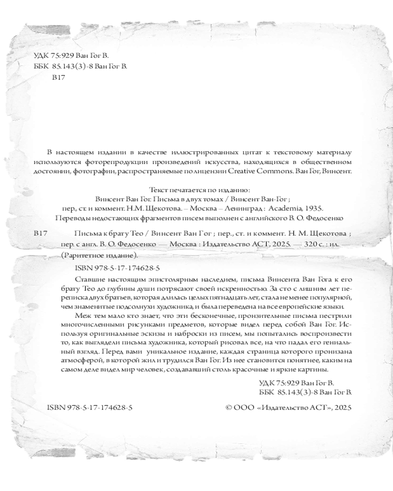 💳 Оплатить за товар можно при получении 🇰🇿 Есть бесплатная доставка по Казахстану от 1 дня 🎁 Копите бонусы с каждой покупки Серия: Раритетное издание Ставшие настоящим эпистолярным наследием, письма Винсента Ван Гога к его брату Тео до глубины души потрясают своей искренностью. За сто с лишним лет переписка двух братьев, которая длилась целых пятнадцать лет, стала не менее популярной, чем знаменитые подсолнухи художника, и была переведена на все европейские языки. Меж тем мало кто знает, что эти бесконечные, пронзительные письма пестрили многочисленными рисунками предметов, которые видел перед собой Ван Гог. Используя оригинальные эскизы и наброски из писем, мы попытались воспроизвести то, как выглядели письма художника, который рисовал все, на что падал его гениальный взгляд. Перед вами уникальное издание, каждая страница которого пронизана атмосферой, в которой жил и трудился Ван Гог. Из нее становится понятнее, каким на самом деле видел мир человек, создававший столь красочные и яркие картины. |
