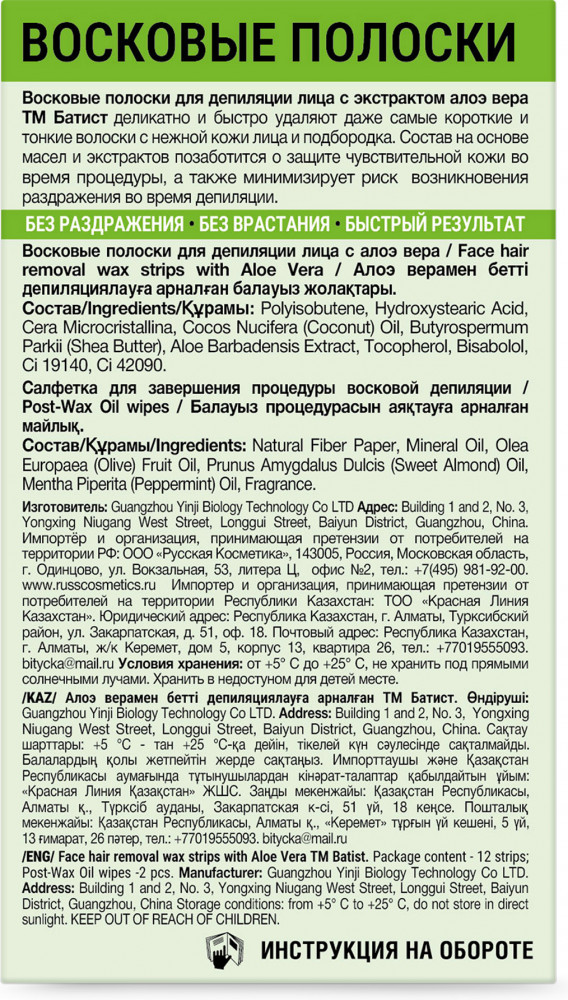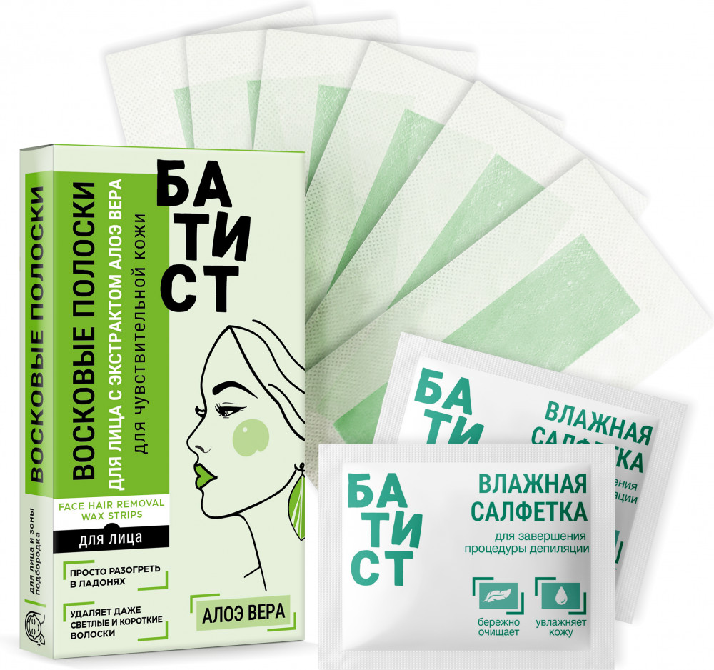 Батист Восковые полоски для депиляции чувствительной кожи лица с экстрактом алоэ вера-20% +51