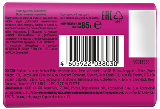 Отзывы «Мыло туалетное парфюмированное «Desir. Пион и красные ягоды»»