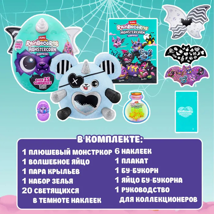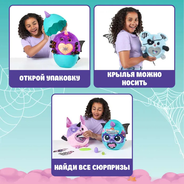 Загляните в жуткий мир монстеркорнов! Вас ждут 35 восхитительных сюрпризов. В коллекции — 6 игрушек. Каждая обладает особым шармом. Эти существа слишком милые, чтобы их пугаться! Используйте крылья, чтобы превратить себя и своего нового друга в летучую мышь!