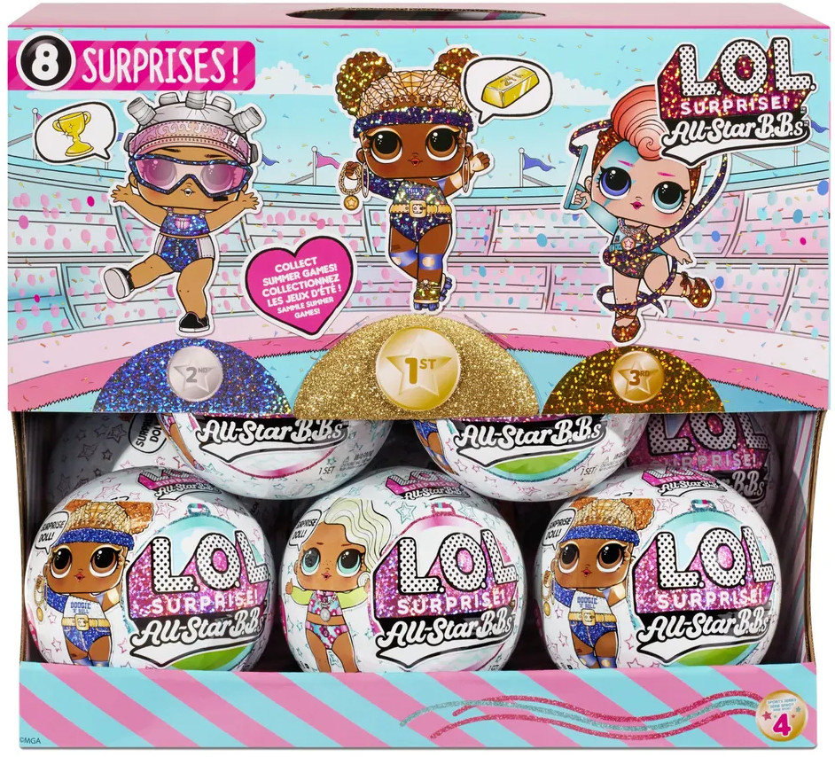 Вот это сюрприз! Встречайте кукол L.O.L. Surprise All Star Sports Summer Games — звёзд летних видов спорта. Наслаждайтесь легендарной распаковкой шарика, находите каждый из сюрпризов и в конце — одну из кукол Лол. Какая же попадется вам? В серии вас ждет одна из 8 кукол со сверкающим макияжем и блестящим элементами, а также уникальными спортивными аксессуарами. Кто же попадётся вам: гимнастка, пловчиха или волейболистка? Чтобы узнать, нужно слой за слоем открыть упаковку-шарик. В процессе распаковки вы найдете 8 сюрпризов, в том числе аксессуары и уникальную одежду для куклы. Куклы пьют из своей бутылочки и меняют цвет в воде. Сюрприз в шарике, который скрывает блестящую куклу, — отличный подарок.